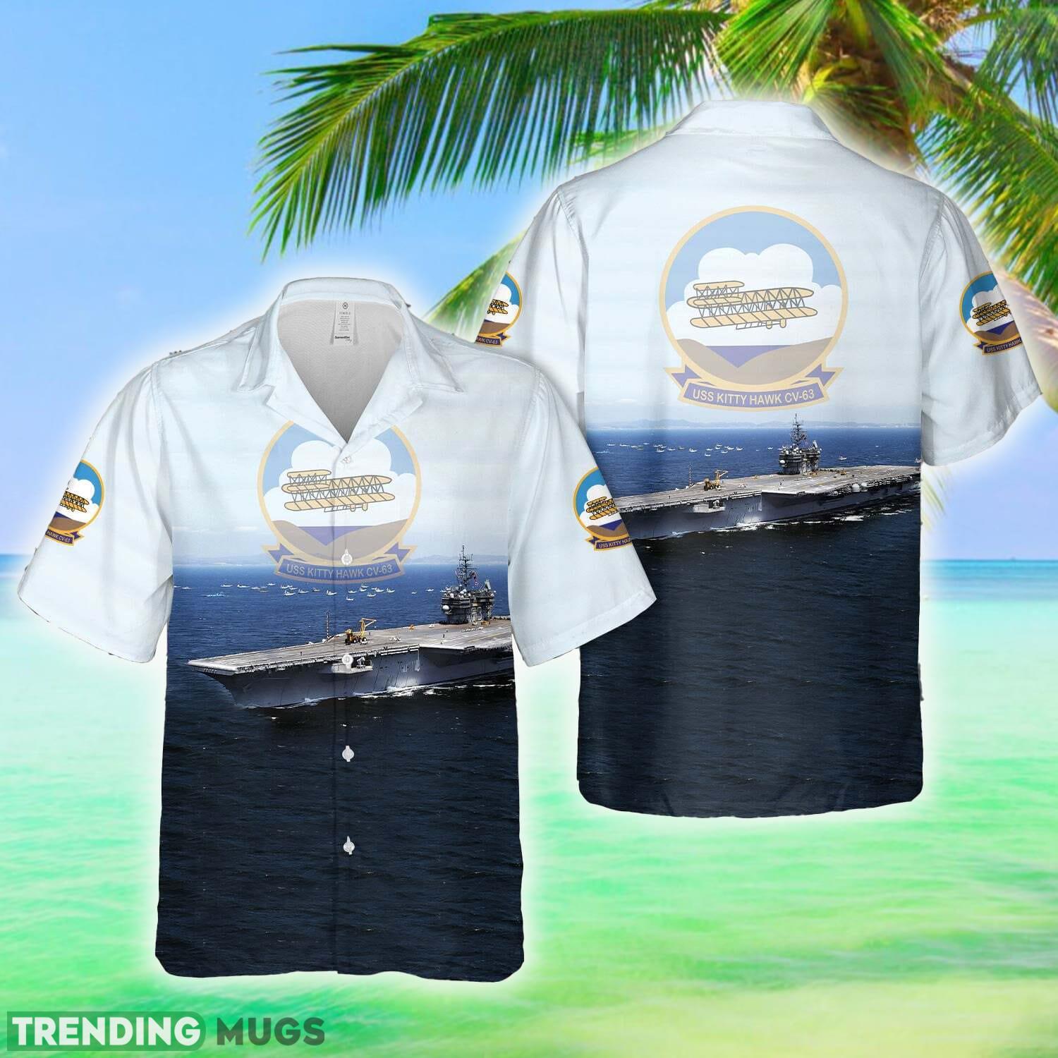 Get ready to set sail in style with the US Navy USS Kitty Hawk (CV-63) Hawaiian Shirt! Show your pride for the Navy while sporting this vibrant and unique shirt featuring the iconic aircraft carrier USS Kitty Hawk. Made with high-quality materials, this shirt is not only fashionable but also comfortable to wear. Whether you’re a Navy veteran, active duty service member, or just a proud supporter, this Hawaiian shirt is the perfect addition to your wardrobe. Stand out from the crowd and represent the US Navy with this one-of-a-kind shirt!