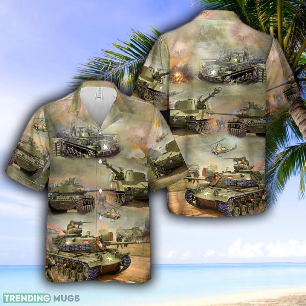 Crafted with meticulous attention to detail, this shirt features a stunning design that combines the iconic American tank imagery from the Vietnam War with the vibrant and tropical vibes of a Hawaiian shirt. Whether you’re a history enthusiast, a fashion-forward trendsetter, or simply someone who appreciates a touch of nostalgia, this shirt is a must-have addition to your wardrobe.