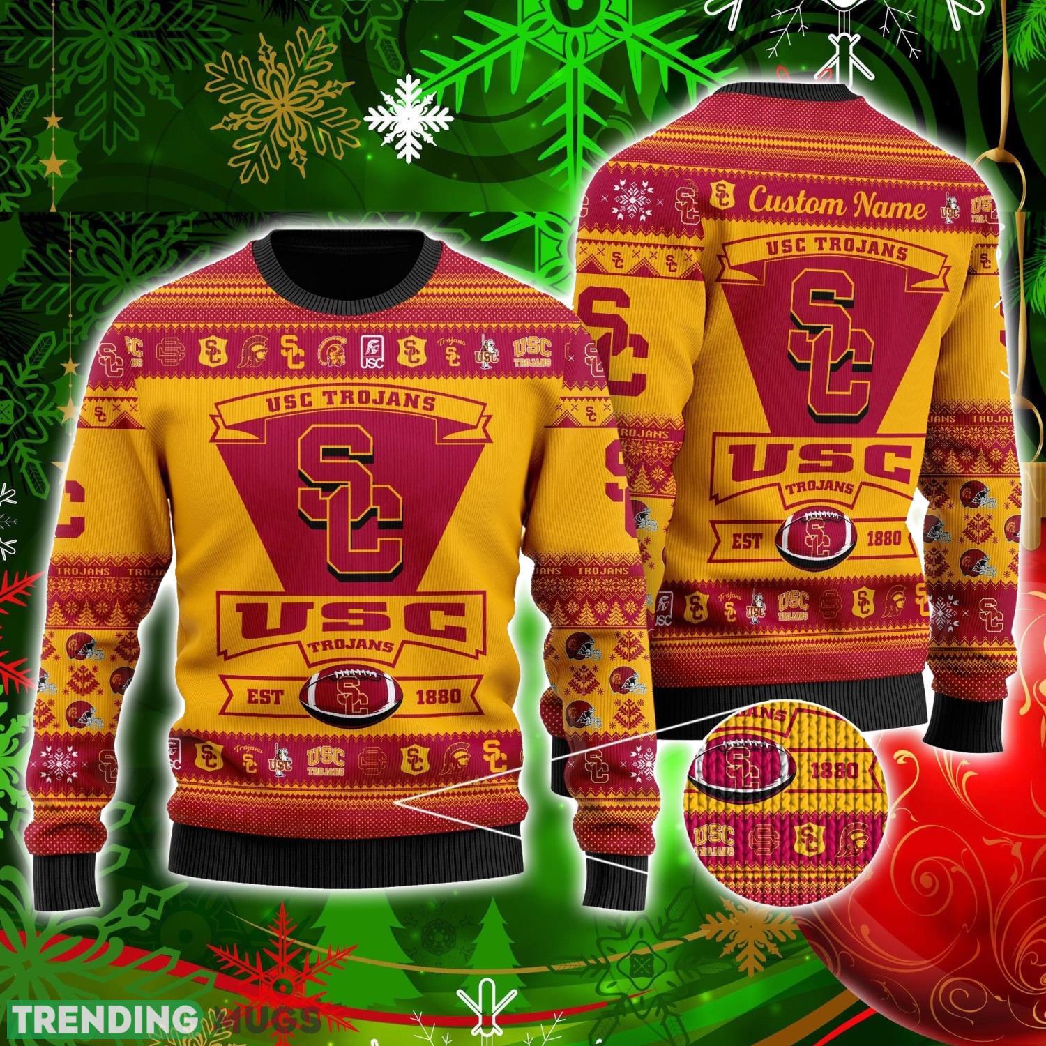Usc Trojans Football Team Logo Custom Name Personalized Ugly Christmas Sweater Christmas Gift For Big Fans Informations: