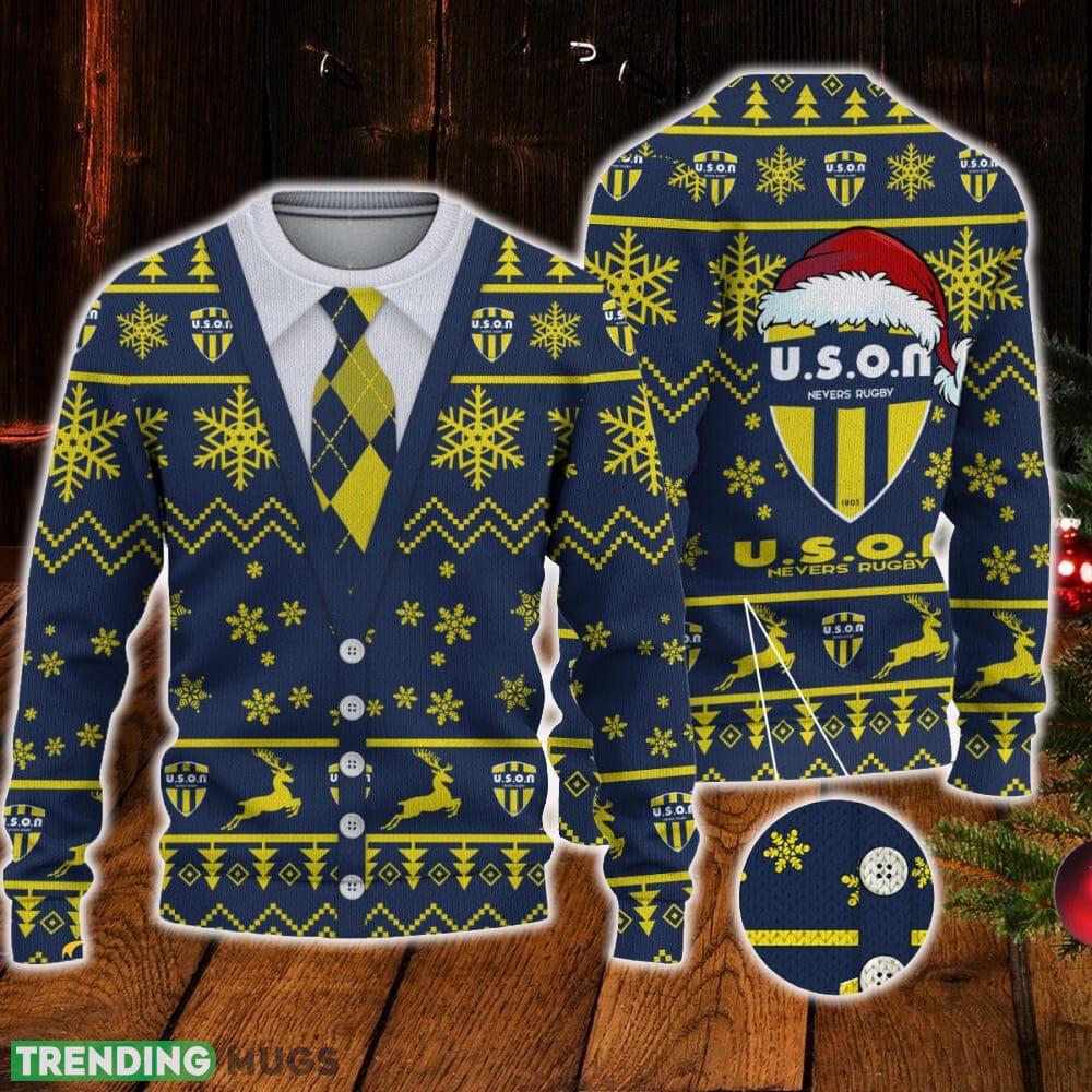 Whether you’re attending an ugly Christmas sweater party or simply want to spread some festive cheer, our USON Nevers Logo For Fans Santa Hat Ugly Christmas Sweater is the perfect choice. It’s not just a sweater, but a statement piece that showcases your team loyalty and holiday spirit.