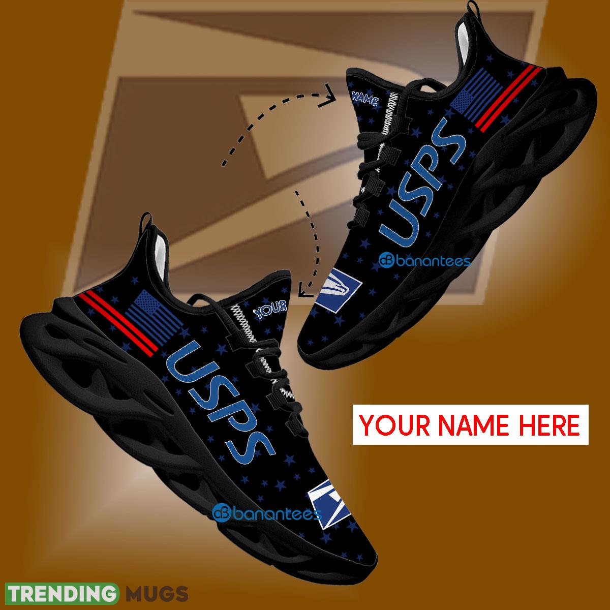 This Usps Chunky Sneaker Symbol Custom Name Gift Max Soul Shoes USA Flag Star New For Fans is a breathable, lightweight, and comfortable casual outdoor shoe that has a unique design. It is made of a mesh fabric which makes it sweat absorbent and breathable, while the rubber bottom ensures traction, comfort, and durability. It is available in two colors: black or white sole. There are two styles of shoelace holes so you can choose your preference.