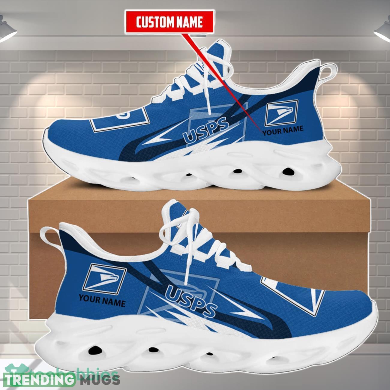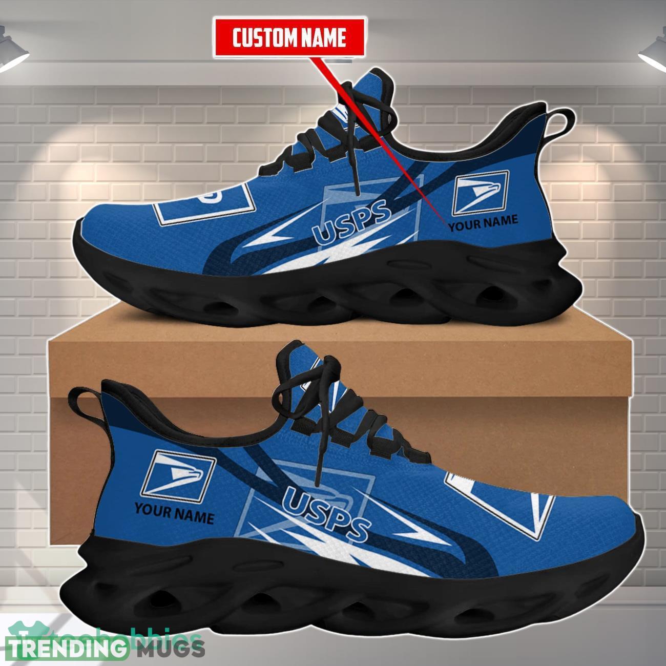 This Usps Max Soul Shoes Premium Edition Custom Name For Men Women is a breathable, lightweight, and comfortable casual outdoor shoe that has a unique design. It is made of a mesh fabric which makes it sweat absorbent and breathable, while the rubber bottom ensures traction, comfort, and durability. It is available in two colors: black or white sole. There are two styles of shoelace holes so you can choose your preference.