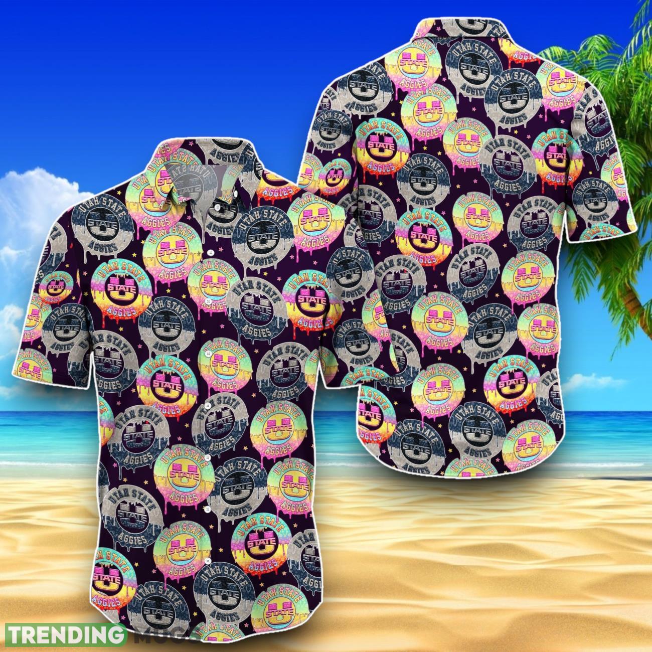 Gear up for game day in style with the Utah State Aggies Hawaiian Shirt! This vibrant and eye-catching design is perfect for sport fans who want to show off their team pride in a unique way. Made with high-quality materials and featuring the iconic team colors and logo, this shirt is sure to make you stand out in the crowd. Whether you’re cheering on the Aggies at the stadium or watching from home, this Hawaiian shirt is a must-have for any die-hard fan. Get yours today and show your support for Utah State in a fun and fashionable way!