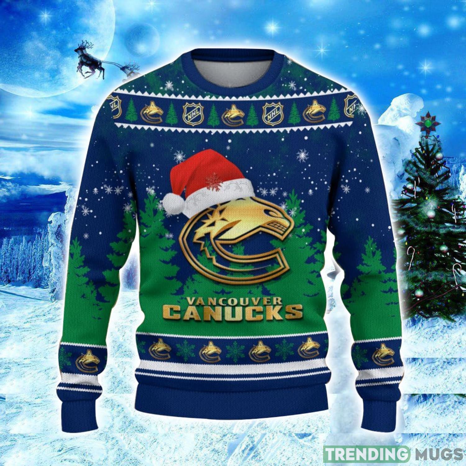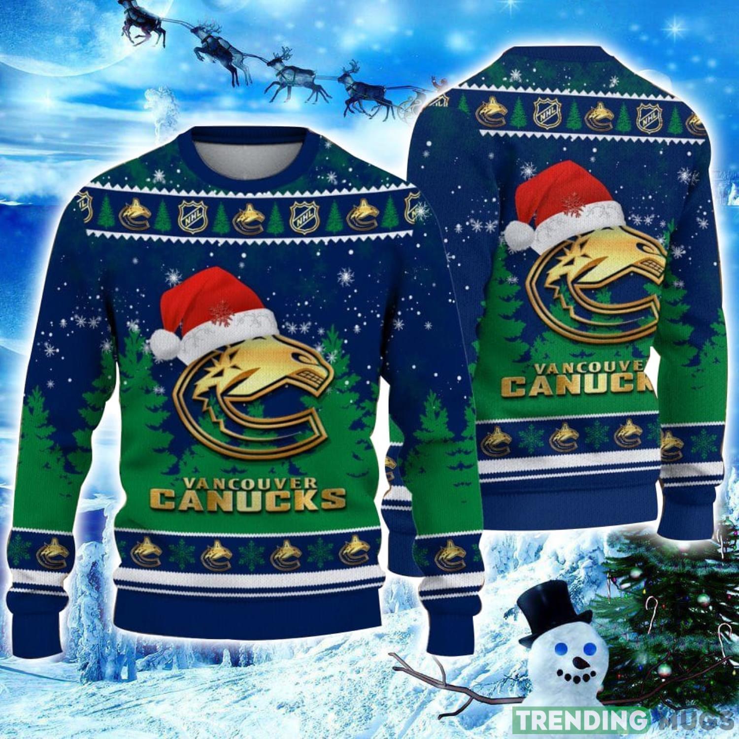 Vancouver Canucks Logo Wearing Santa Hat Christmas Gift Ugly Christmas Sweater Christmas Gift Ideas Informations: