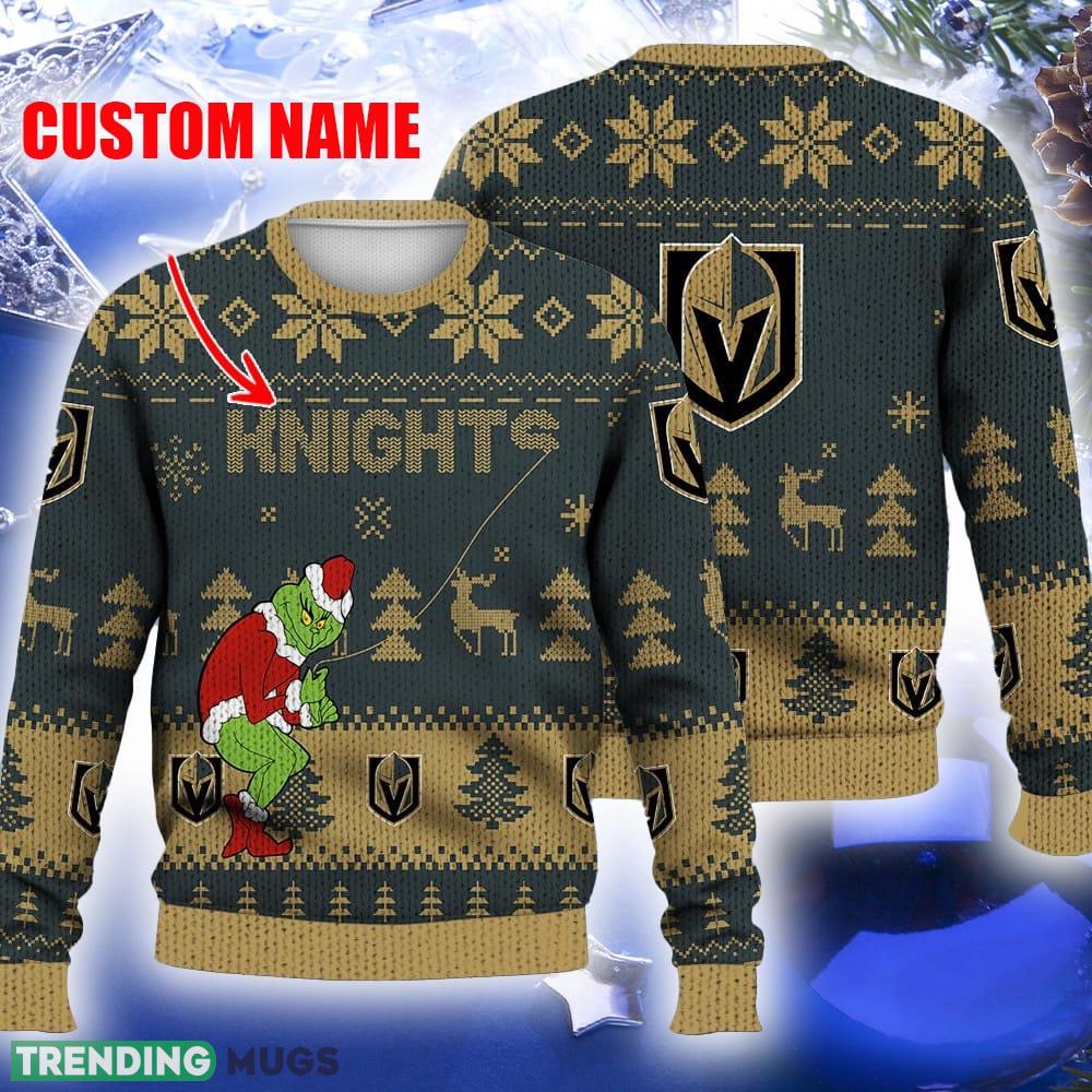 Vegas Golden Knights Ugly Christmas Sweater Grinch Custom Ice Hockey NHL Gift For Christmas Holidays Custom Name