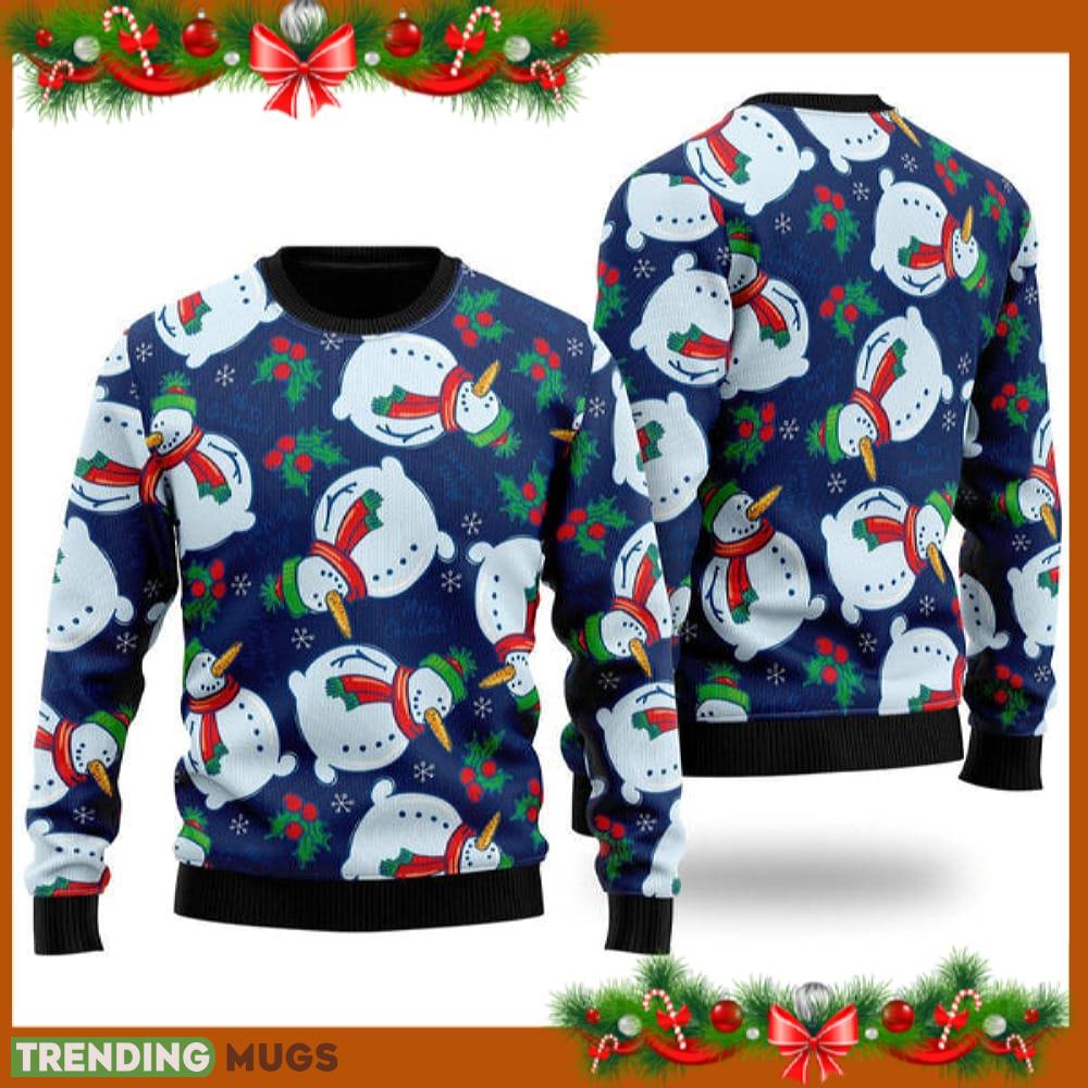 Very Snowman On Blue Pattern Ugly Christmas Sweater Funny Gift For Men And Women Family Holidays 3D Sweater
