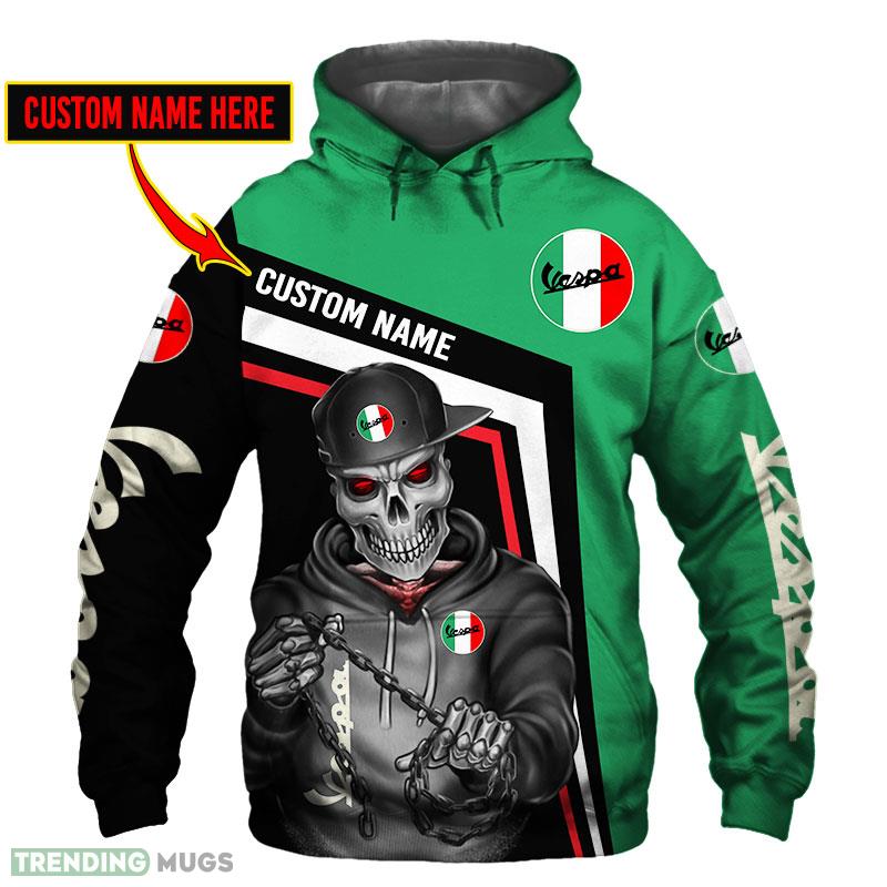 Vespa Skull Colorful 3D Hoodie, Zip Hoodie, T Shirt All OVer Print Lovers Car For Fans Gift Custom Name – Vespa Skull Custom Name 3D Hoodie_1