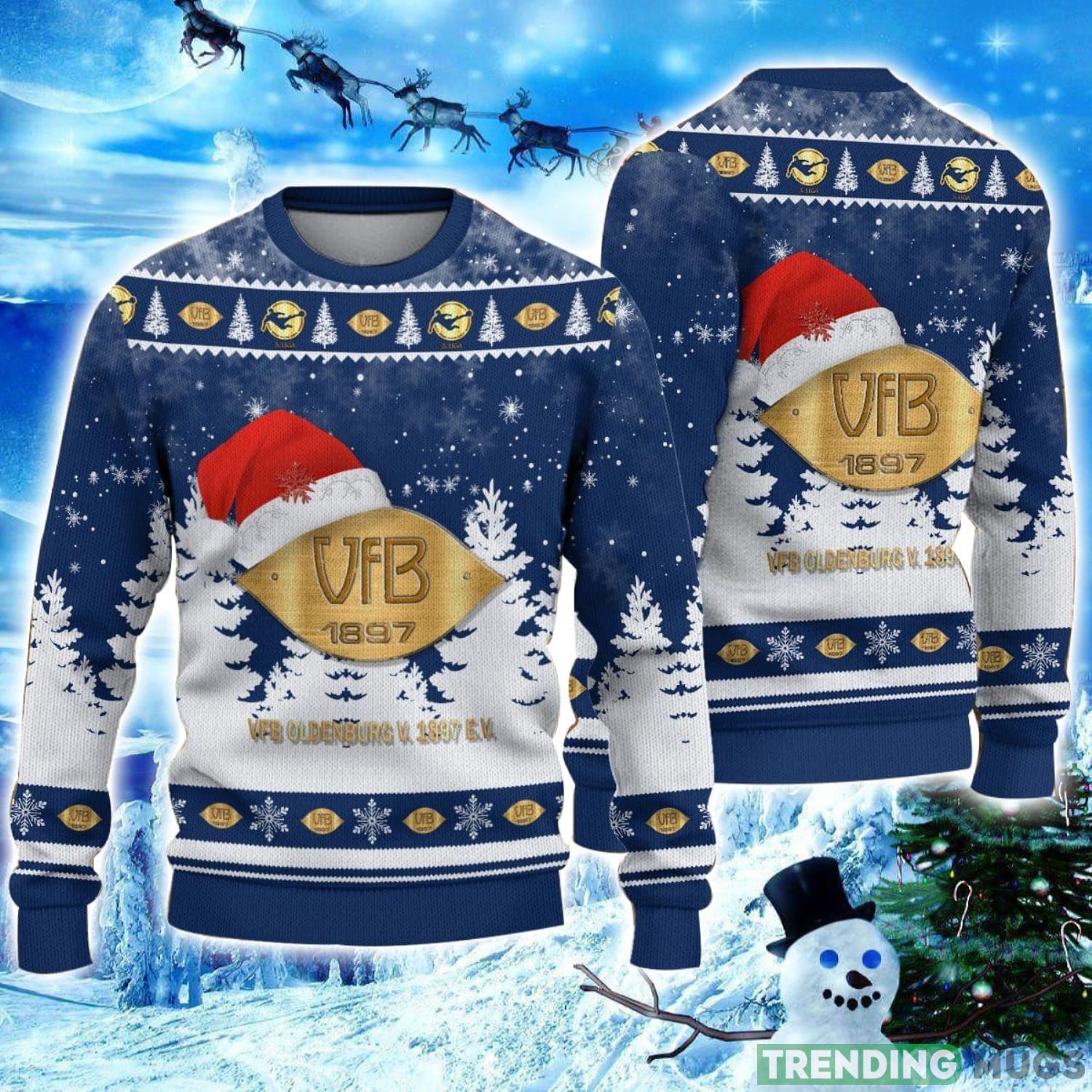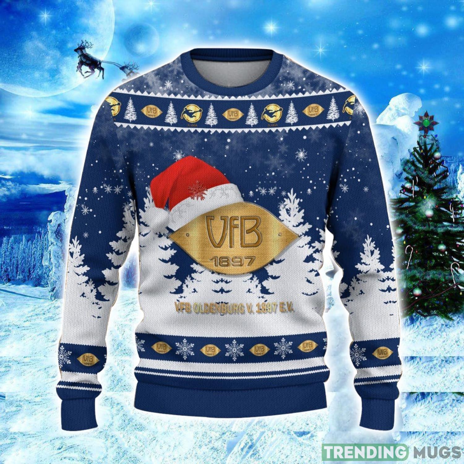 Whether you’re attending a holiday party, watching a game with friends, or simply enjoying a cozy night by the fireplace, this VfB Oldenburg v. 1897 e.V. Logo Wearing Santa Hat Ugly Christmas Sweater is the ultimate festive attire. Spread the joy of the season while proudly displaying your team spirit. Don’t miss out on this must-have holiday sweater – order yours today and be the envy of all your fellow fans!