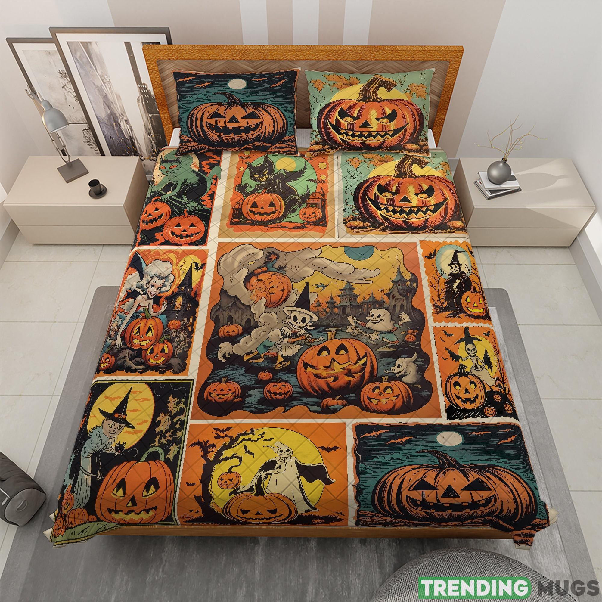 Information Vintage Retro Spooky Season Pumpkin Halloween Quilt Bedding set Vintage Pumpkin Jack-o’-lantern Quilt Blanket Vintage Halloween Decor: