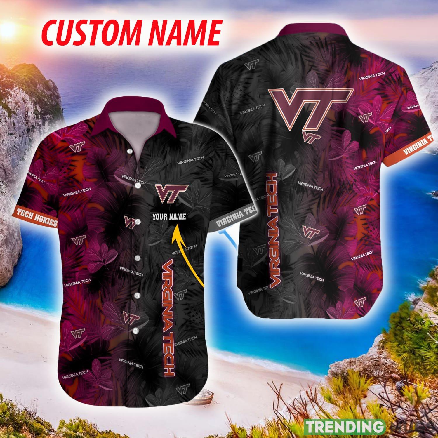 Virginia Tech Hokies NCAA Logo Leaf Fans Hawaiian Shirt For Men And Women Gift Custom Name Hawaiian Shirt