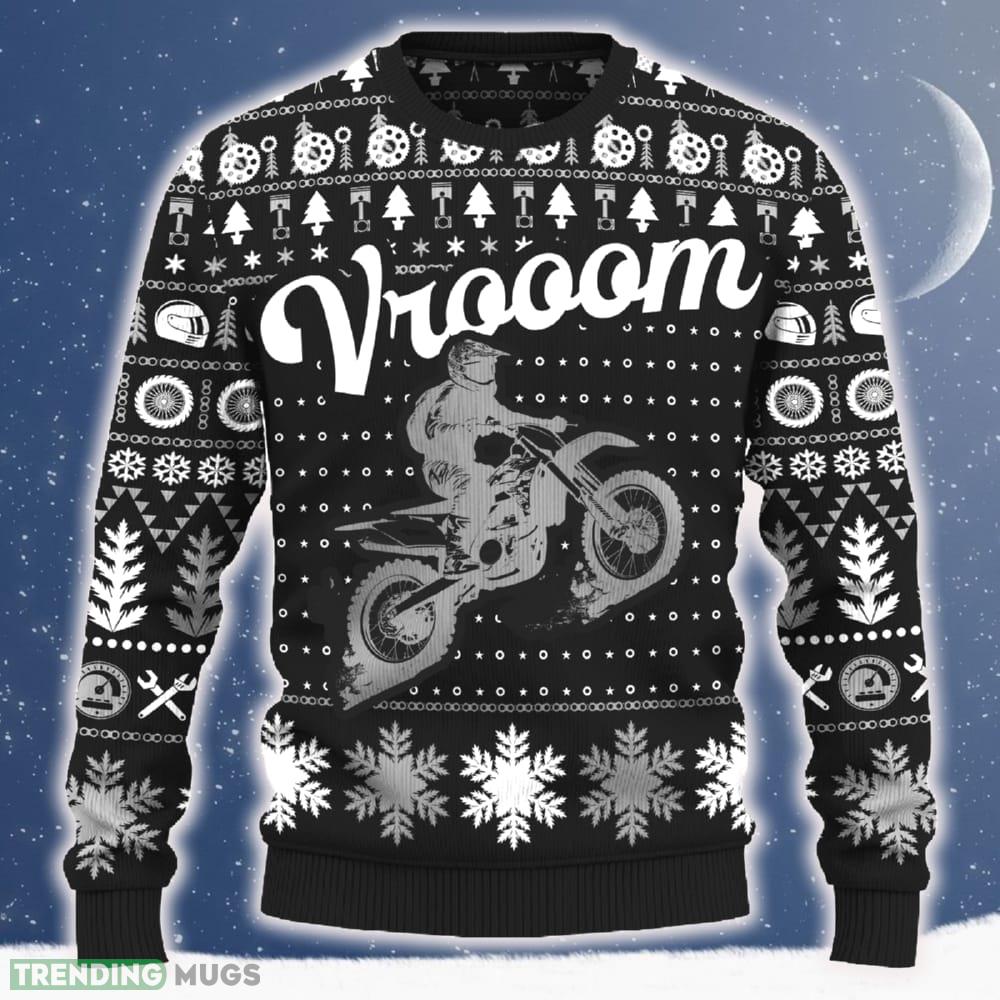 Get ready to rev up your style this holiday season with the Vrooom CRF250R Christmas Tree AOP Sweater Motorcross Special Gift for Men and Women. This eye-catching sweater combines the thrill of motorcross with the festive spirit of Christmas, making it the perfect gift for any adrenaline junkie in your life.