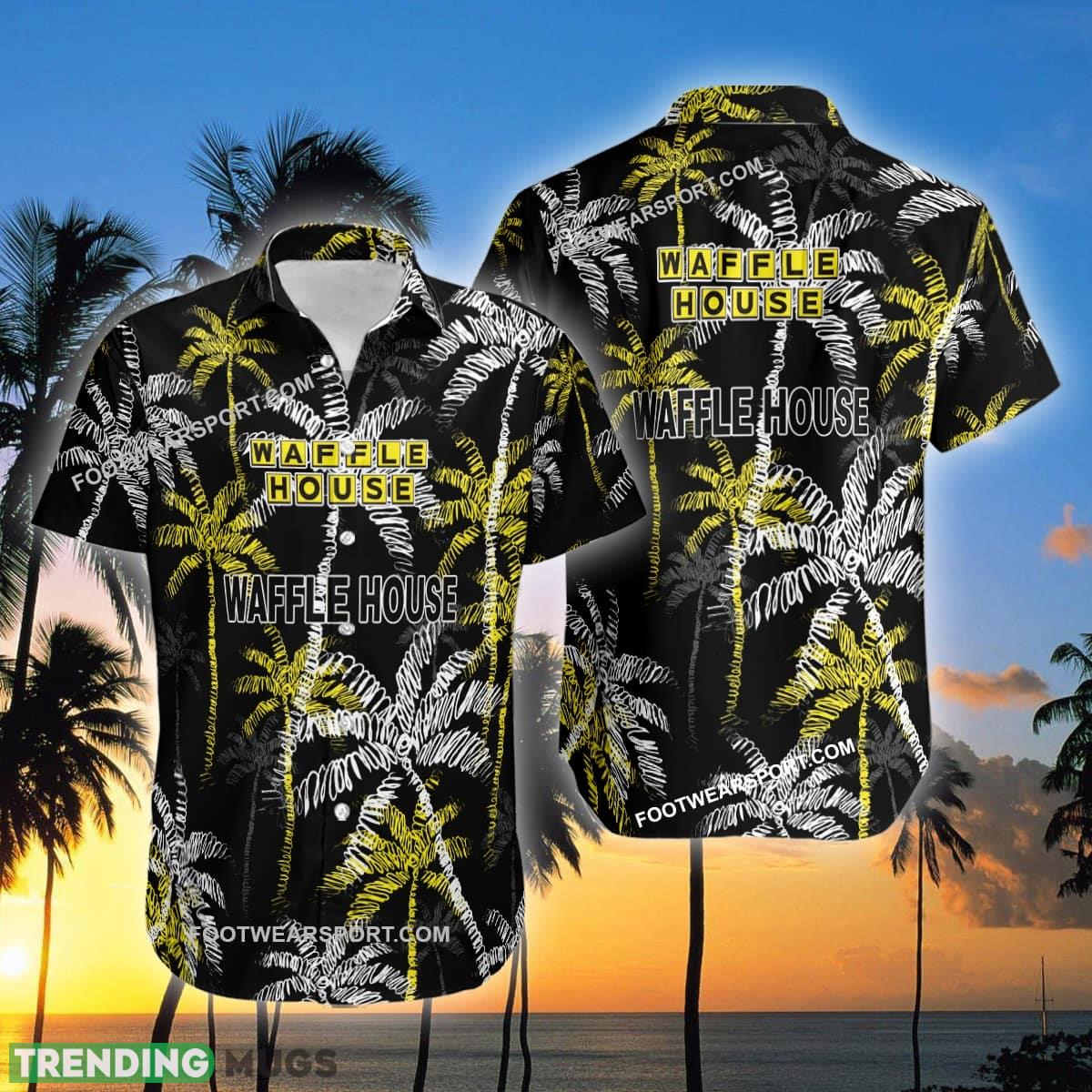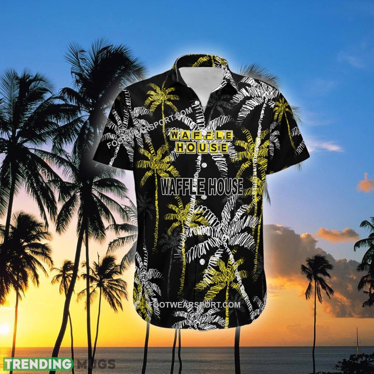 Waffle House Brand Coconut Tree Pattern Black Hawaiian Shirt Gift For Summer Details: