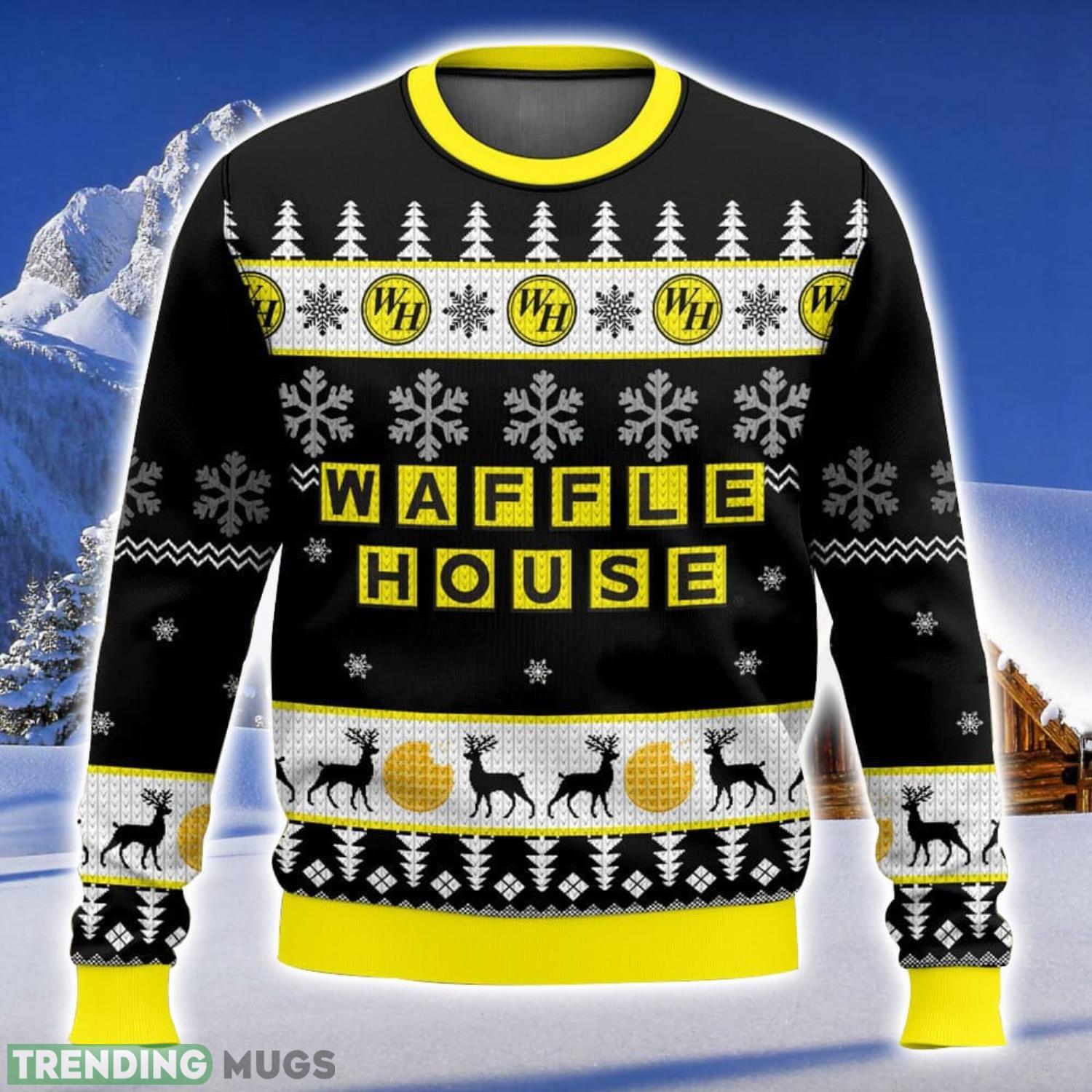 Waffle House Reindeer Pattern All Over Printed Ugly Christmas Sweater Trending Christmas Gift Ideas Informations: