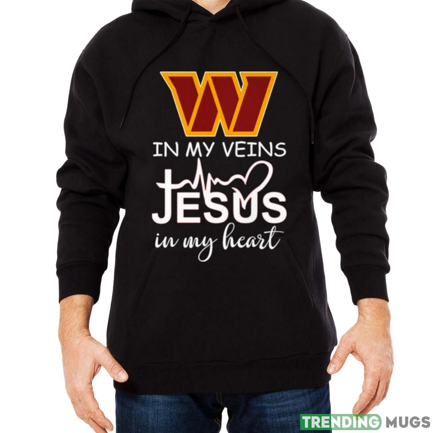 Washington Commanders Logo 2023 In My Veins Jesus In My Heart shirt – Men Black Hoodie