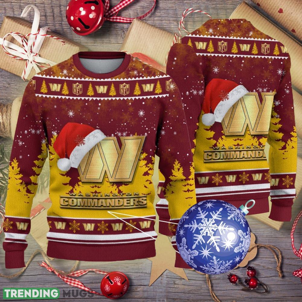 Washington Commanders Logo Golden Fans Santa Hat Tree Knitted Christmas Sweater Informations: