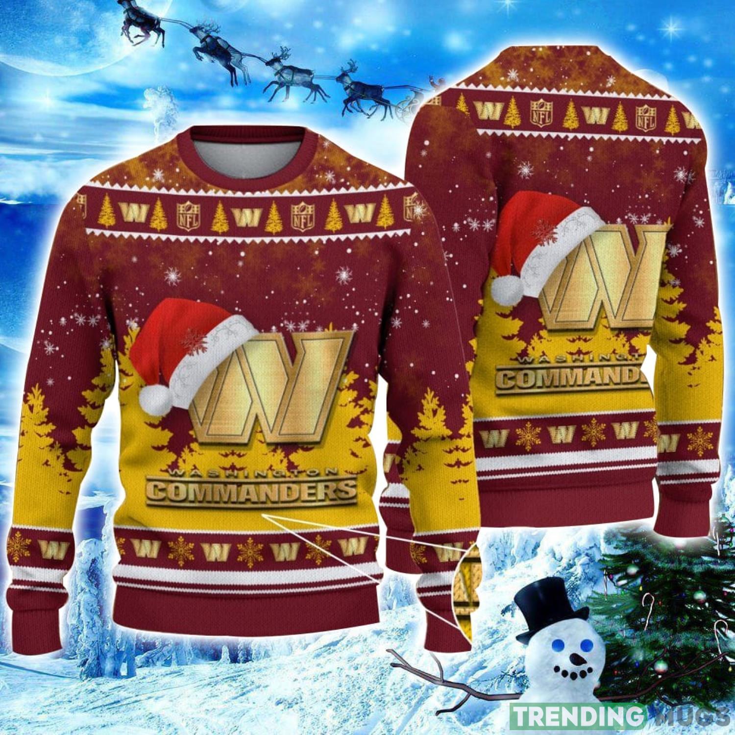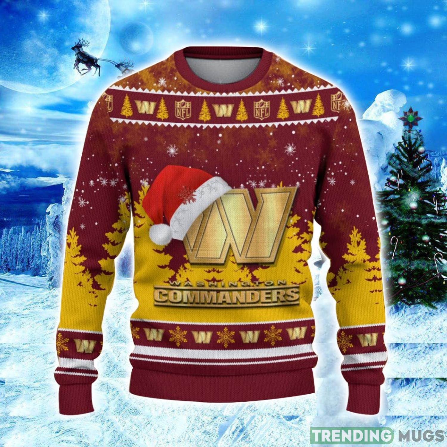 Washington Commanders Logo Wearing Santa Hat Christmas Gift Ugly Christmas Sweater Christmas Gift Ideas Product Photo 1