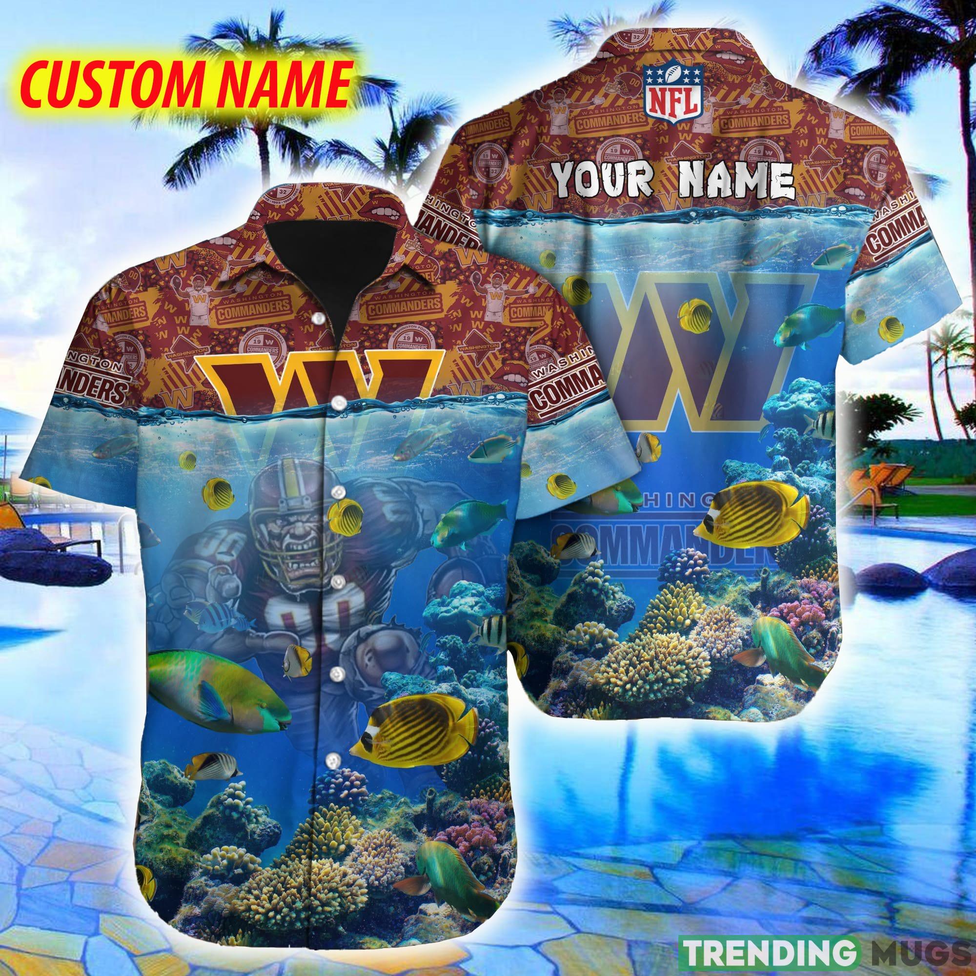 Washington Commanders NFL Ocean Beach Coral Fish 3D Hawaiian Shirt For Fans Gift Custom Name Details: