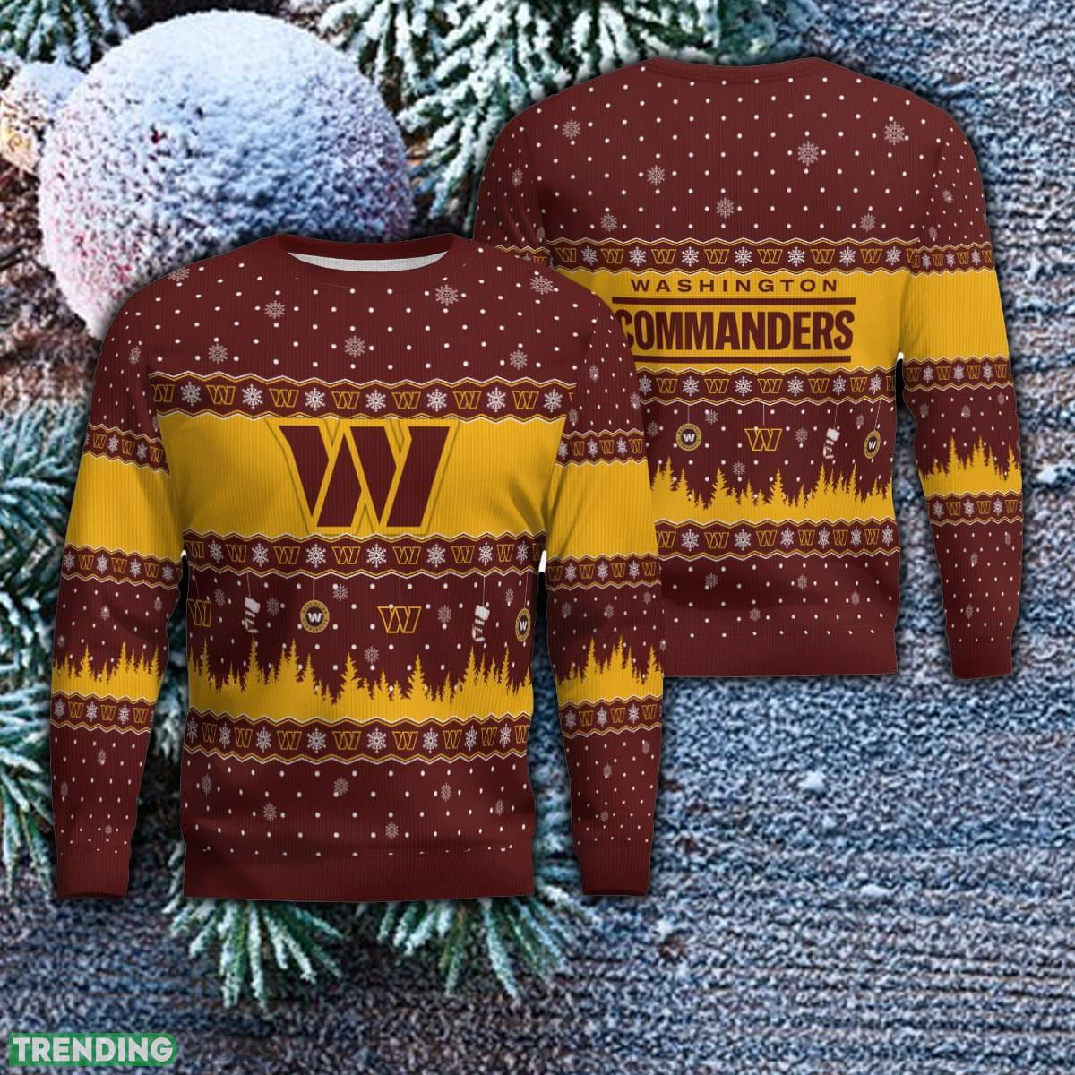 Crafted with love and designed to showcase your unwavering support for the Washington Commanders, these sweaters are a must-have addition to your winter wardrobe. Featuring the team’s iconic logo and colors, this sweater proudly displays your loyalty and adds a touch of holiday spirit to any occasion.