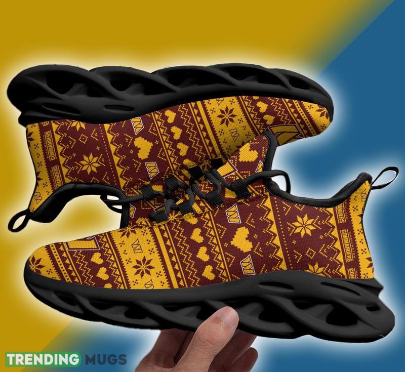 Featuring a unique blend of the iconic Washington Commanders logo and festive X-max patterns, these shoes are a must-have for any sneakerhead or fan of the team. The eye-catching design will turn heads wherever you go, whether you’re hitting the streets or attending holiday parties.