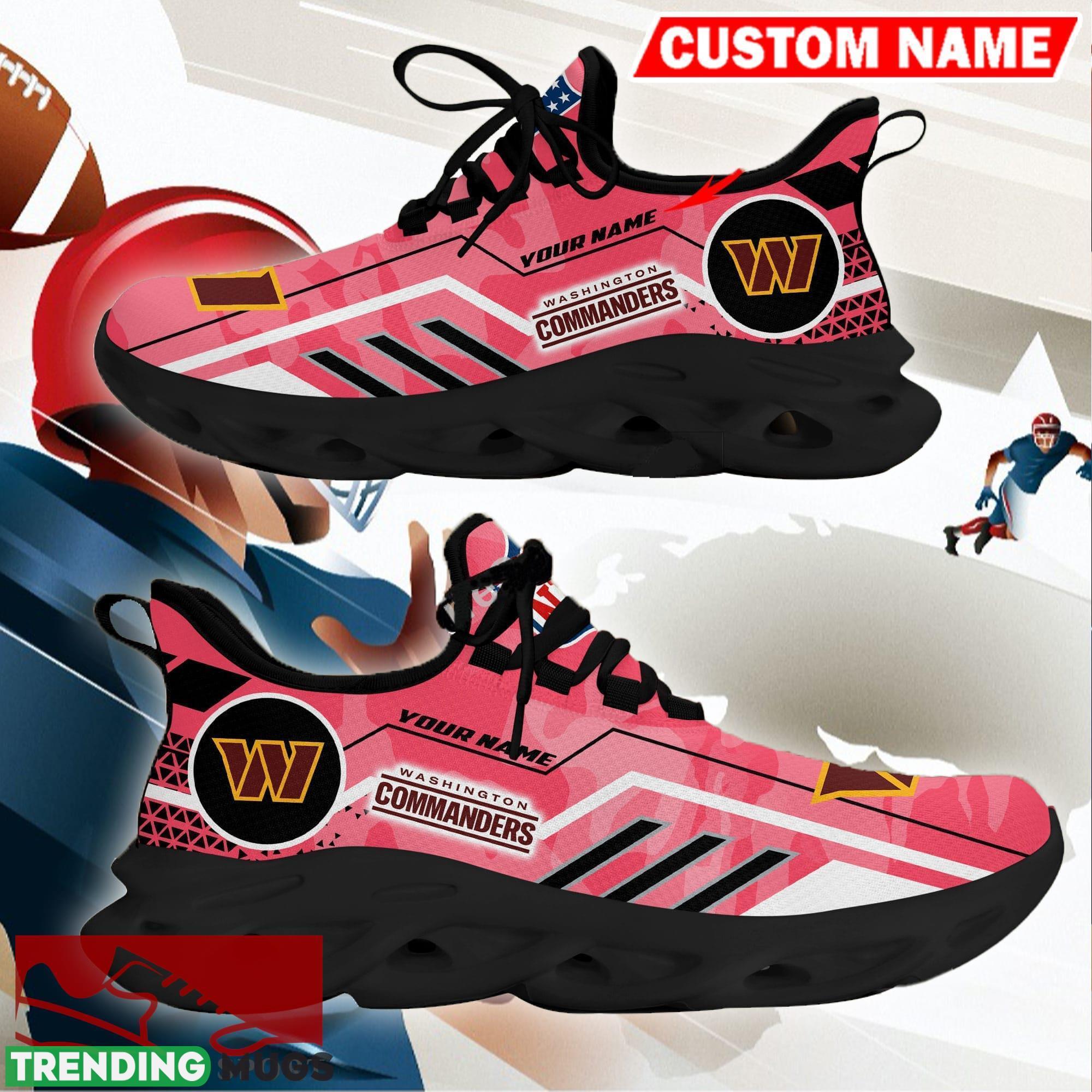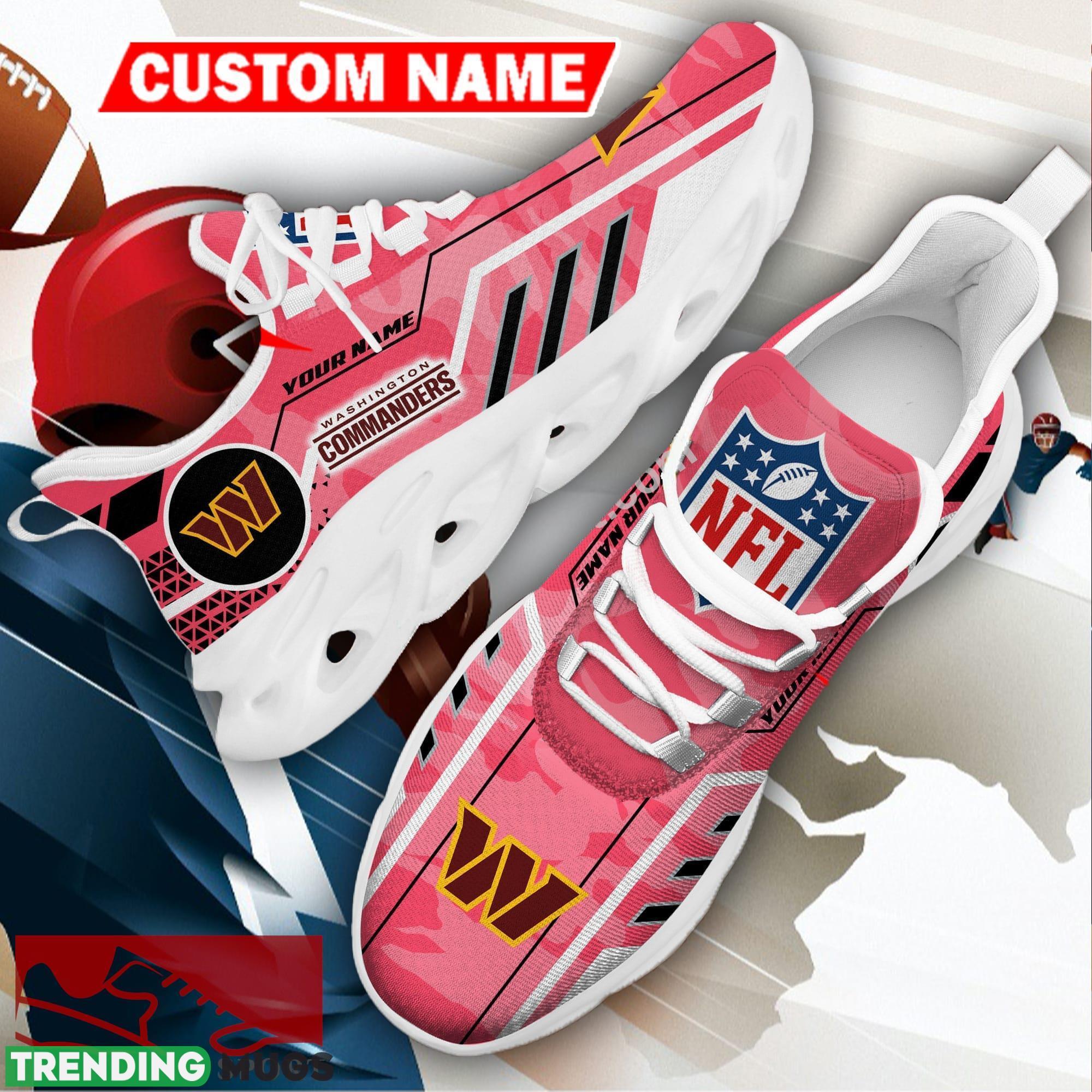 Get ready to show off your team pride with our Washington Football Team NFL Logo Chunky Sneakers! These Camo Pink Max Soul Shoes are not only stylish but also personalized to make a statement.