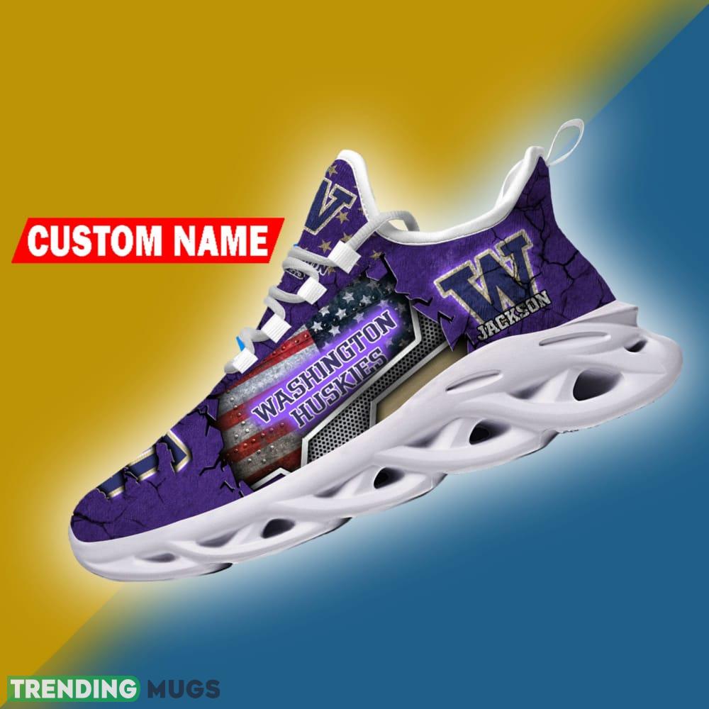 Washington Huskies NCAA Sport Sneakers Flag Pattern Max Soul Shoes Personalized information: