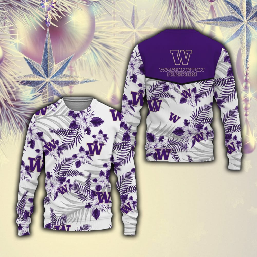Washington Huskies Tropical Patterns Best Trends Hibicus Flowers 3D Sweater For Men And Women Gift Fans Christmas – 231023-102333