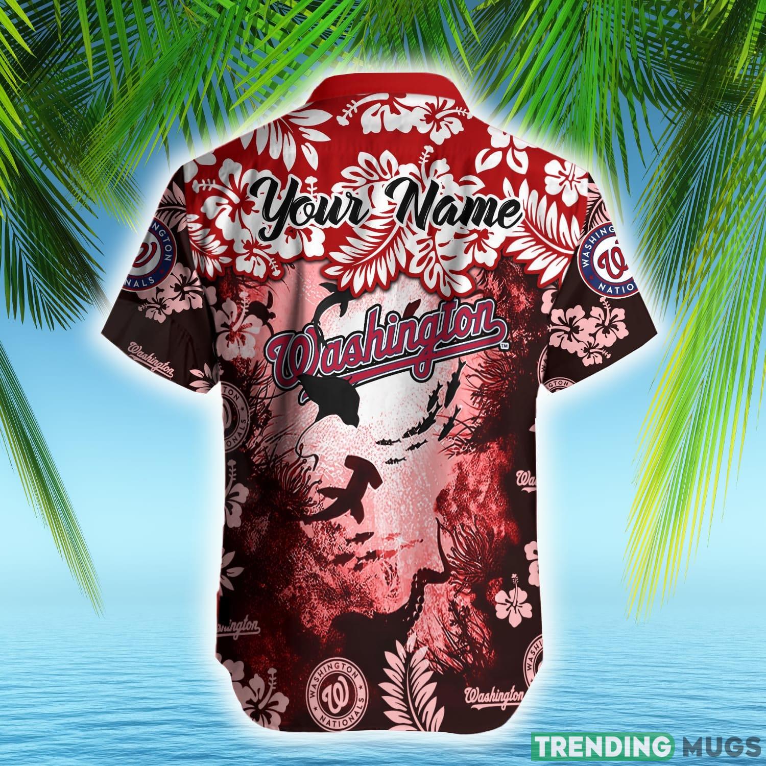 Don’t miss out on this opportunity to showcase your team spirit in a unique and stylish way. Get your very own Washington Nationals MLB Hawaiian Shirt Ocean Hibiscus Custom Name For Fans Gift today and be the envy of every fan in the stadium!