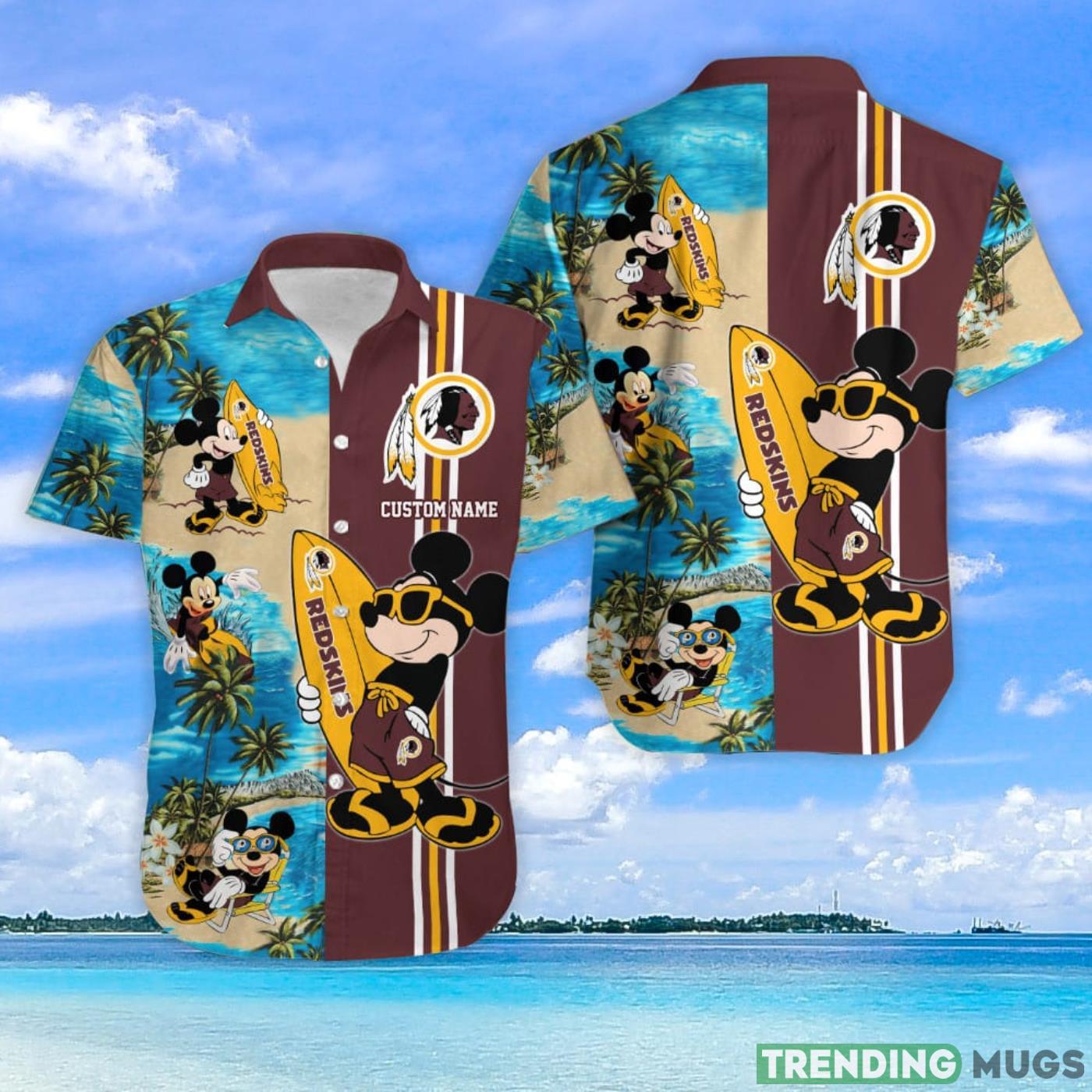 Washington Redskins Mickey Surfing Lover Custom Name Hawaiian Shirt Details: