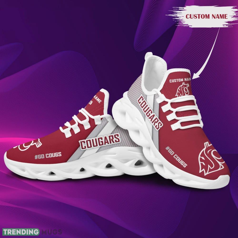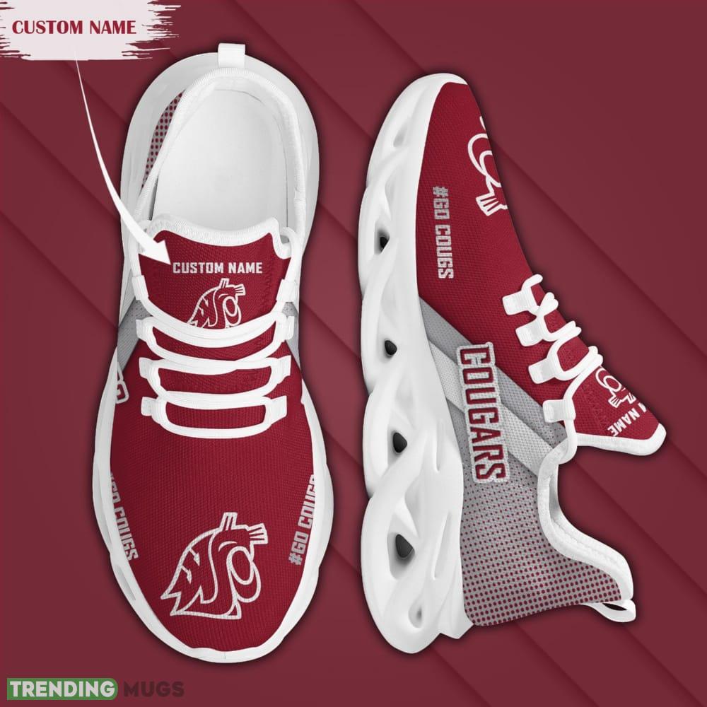 Some of the Washington State Cougars Logo Custom Name Pattern In Red And Gray 3D Max Soul Sneaker Shoes photos