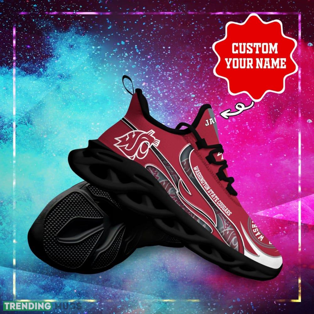 Don’t miss out on the opportunity to own these exclusive Washington State Cougars Logo Pattern Custom Name 3D Max Soul Sneaker Shoes. Step up your game and order yours today!