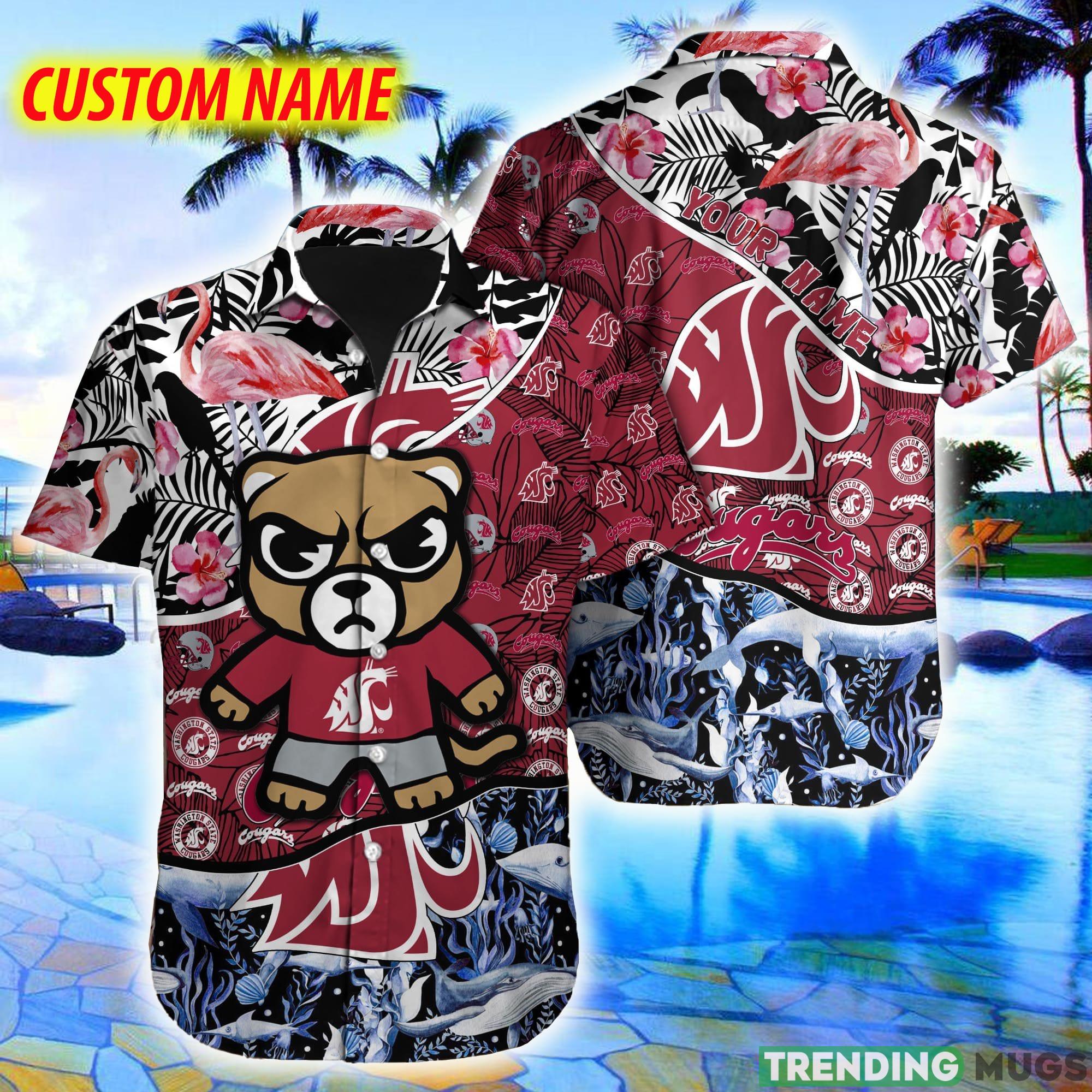 Washington State Cougars NCAA Custom Name Flamingo Flower Pink Logo Funny Hawaiian Shirt Details: