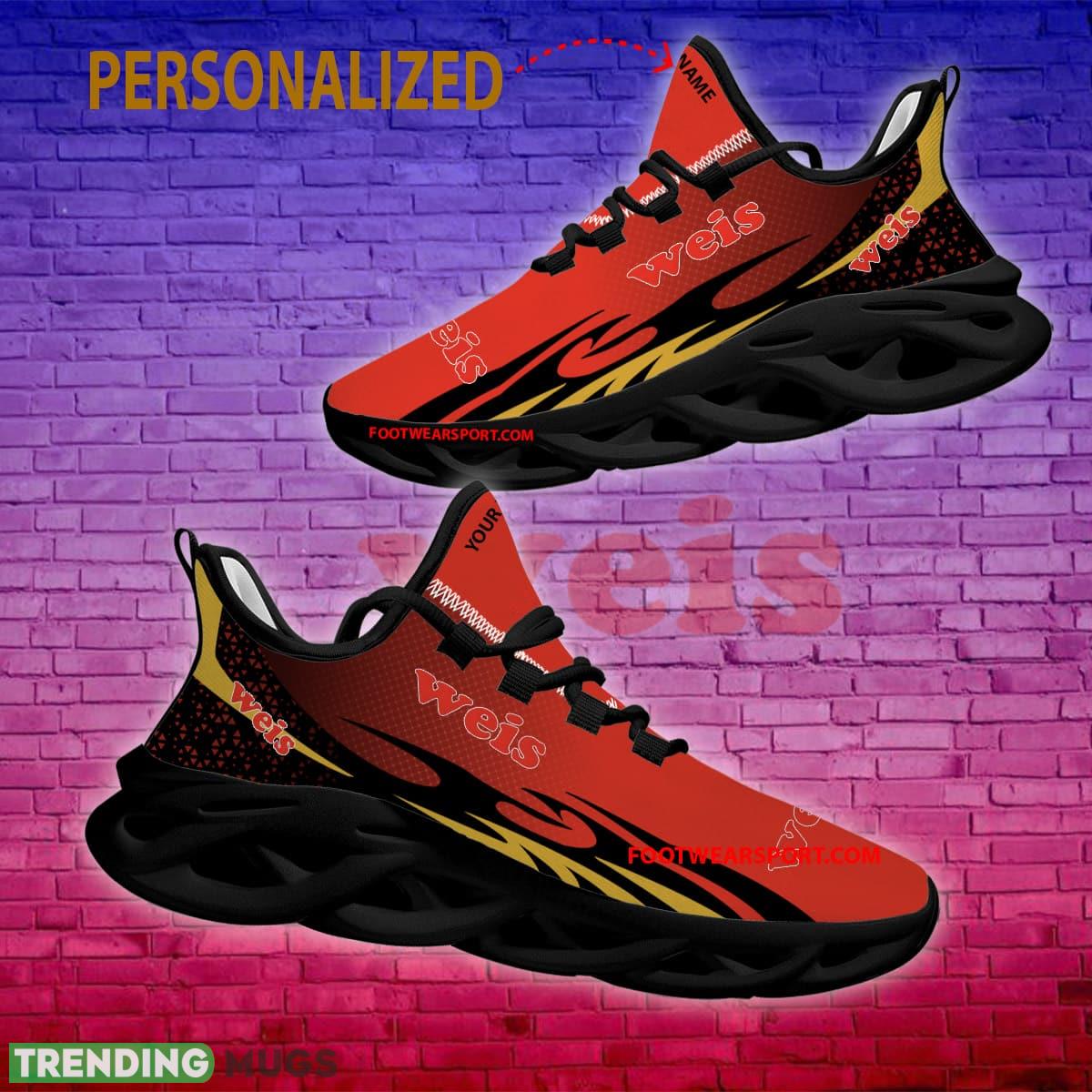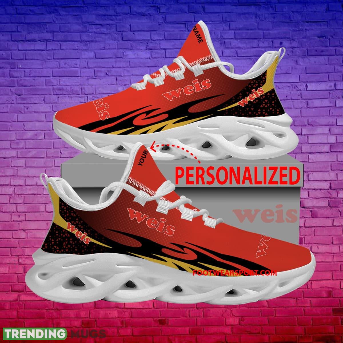 Step up your shoe game with the Weis Markets Max Soul Shoes Pattern New Sport Sneaker Embody Custom Name. These stylish and comfortable sneakers are perfect for any athletic activity or casual outing. With a unique pattern design and the option to customize with your name, these shoes are sure to make a statement. Upgrade your footwear collection with the Weis Markets Max Soul Shoes today!