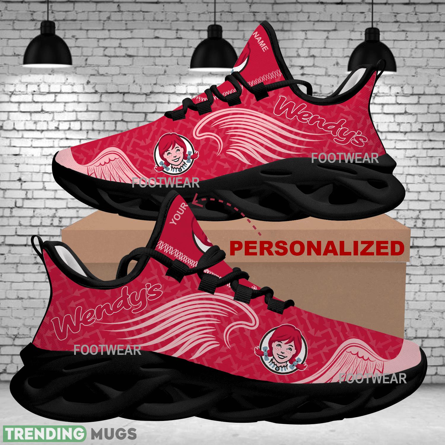 Step up your sneaker game with the WENDY’S Brand Logo Wings Pattern Max Soul Shoes! These personalized urban running sneakers are not your average shoes. Featuring a unique wings pattern design and the iconic WENDY’S brand logo, these sneakers are sure to turn heads wherever you go.