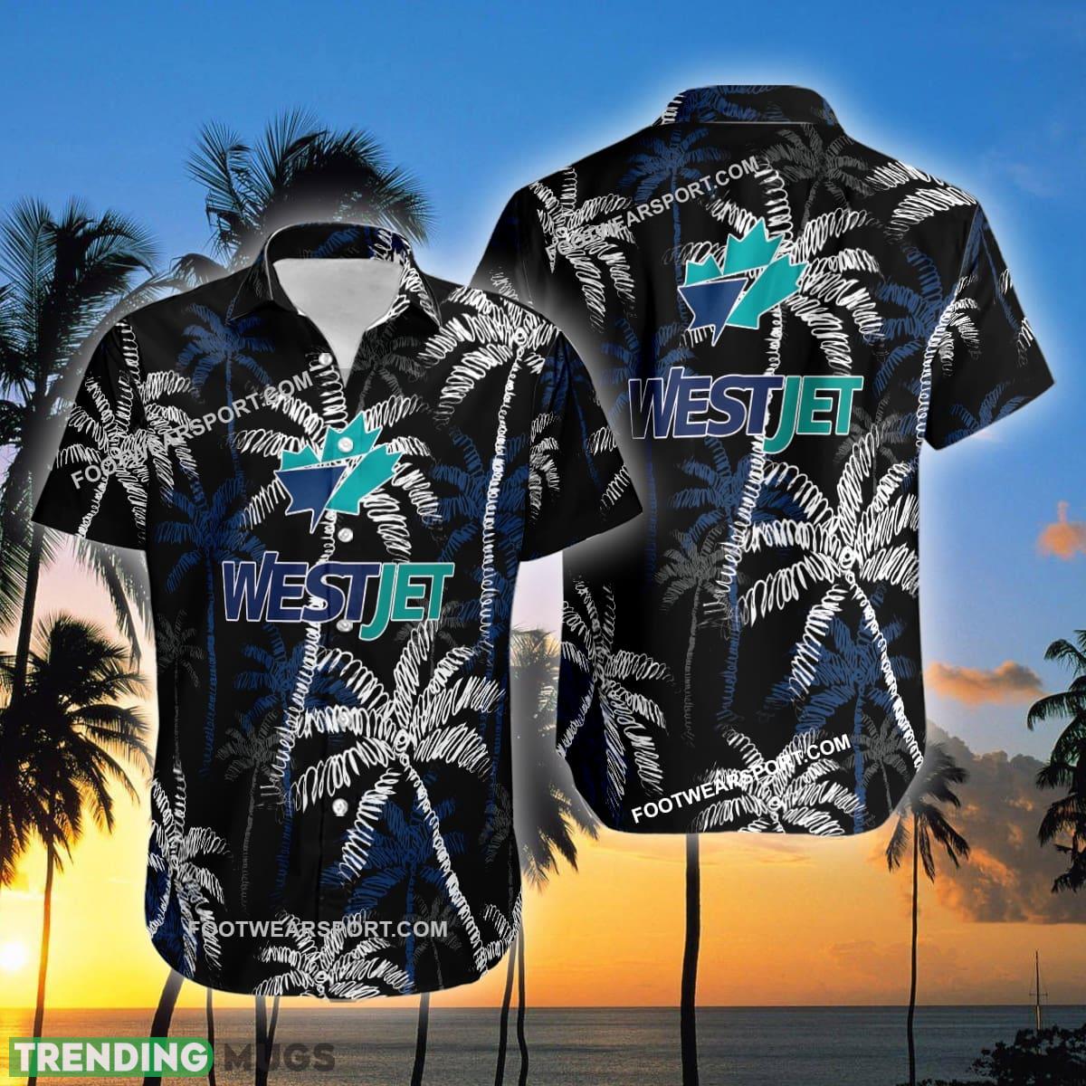 Westjet Souvenir Brand Coconut Tree Pattern Black Hawaiian Shirt All Over Print Gift Summer Details: