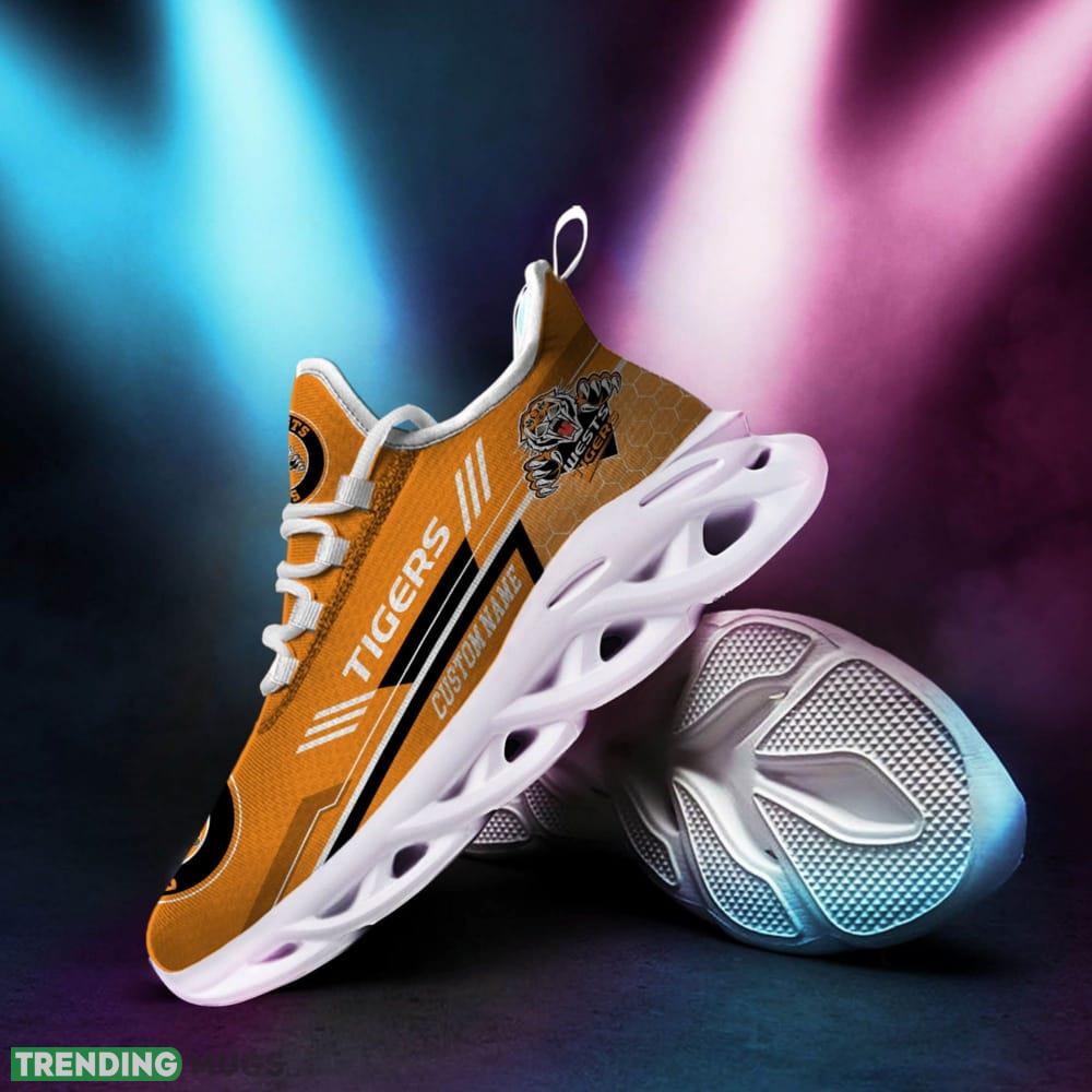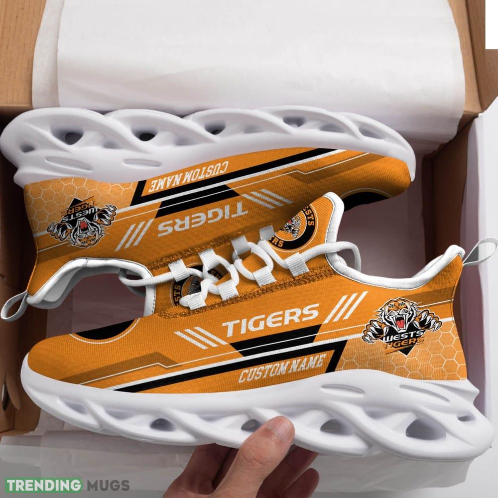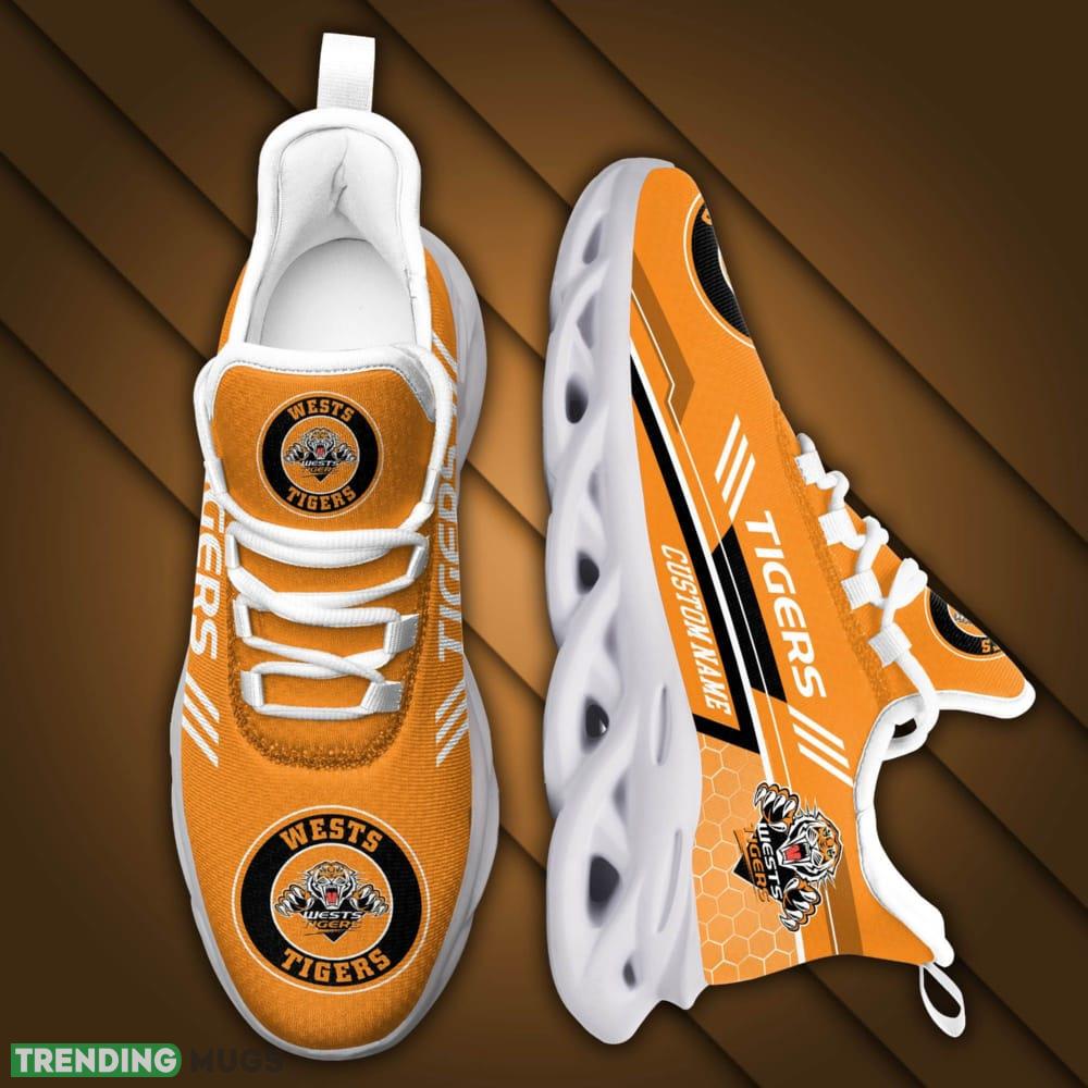 These Wests Tigers Logo Custom Name Pattern 3D Max Soul Sneaker Shoes are not just for game days – they are perfect for everyday wear too. Whether you’re strolling around town, hitting the gym, or catching up with friends, these sneakers will elevate your style and let everyone know where your loyalties lie.