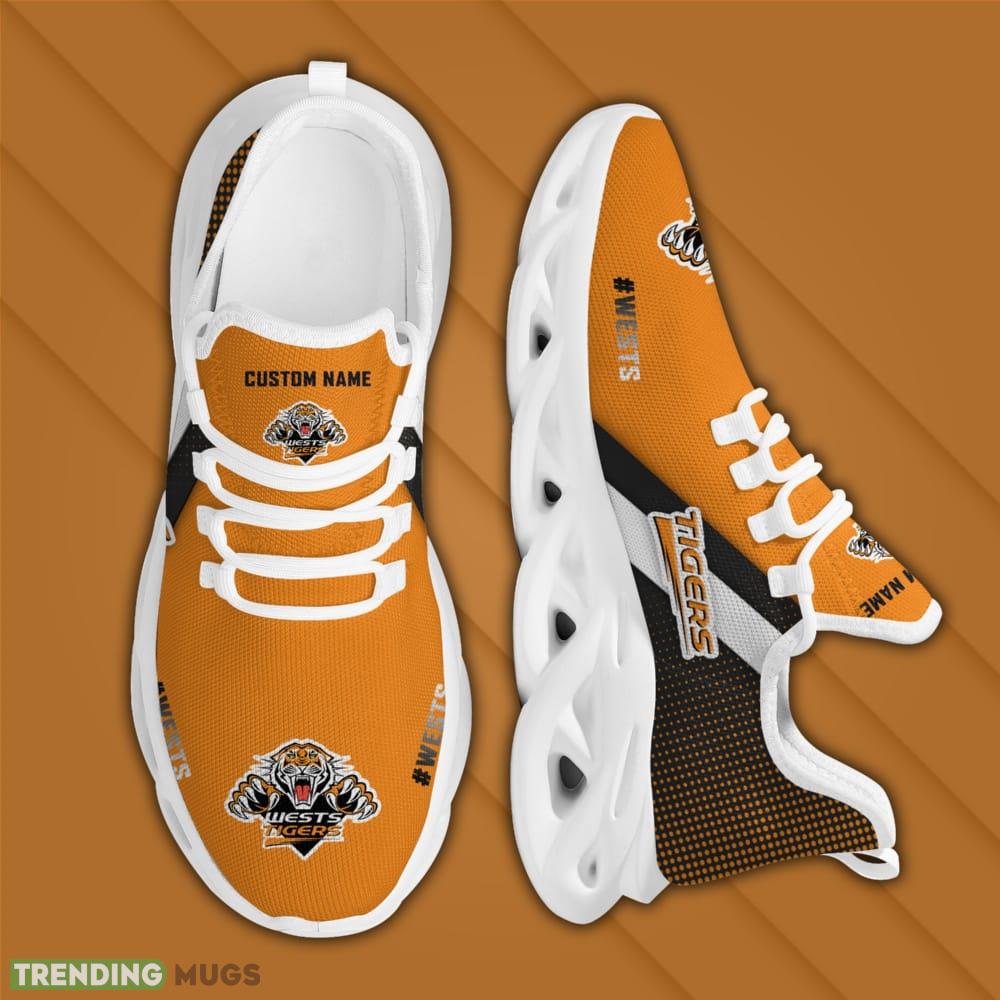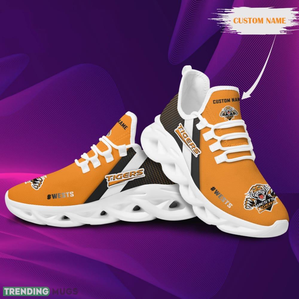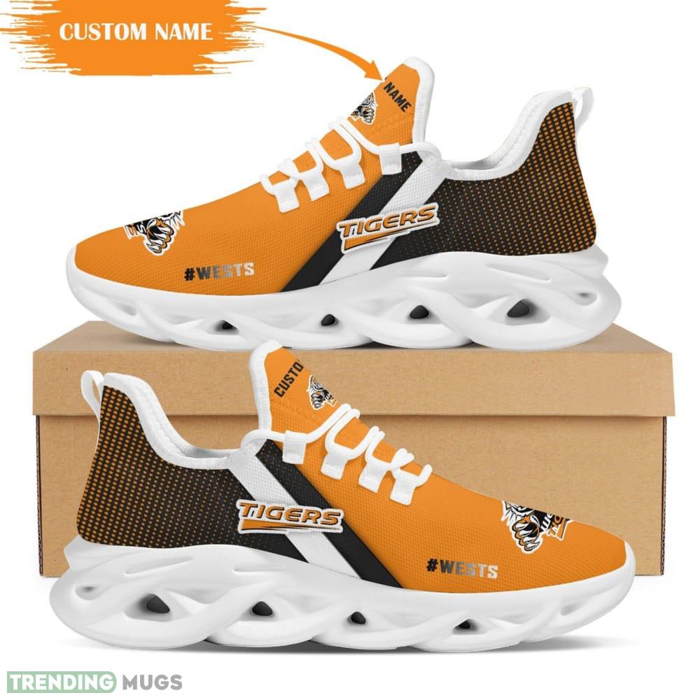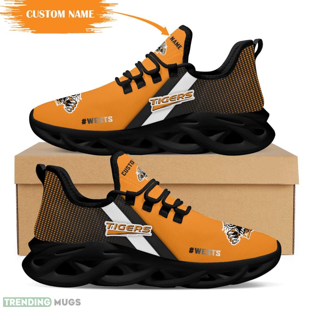 Wests Tigers Logo Custom Name Pattern 3D Max Soul Sneaker Shoes In Orange And Black information: