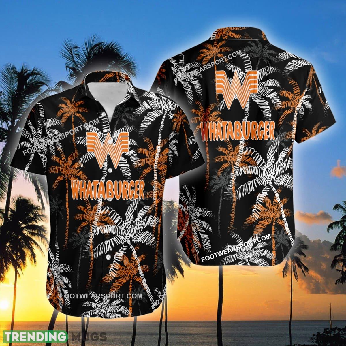 WHATABURGER Brand Coconut Tree Pattern Black AOP Hawaiian Shirt Gift For Fans Details: