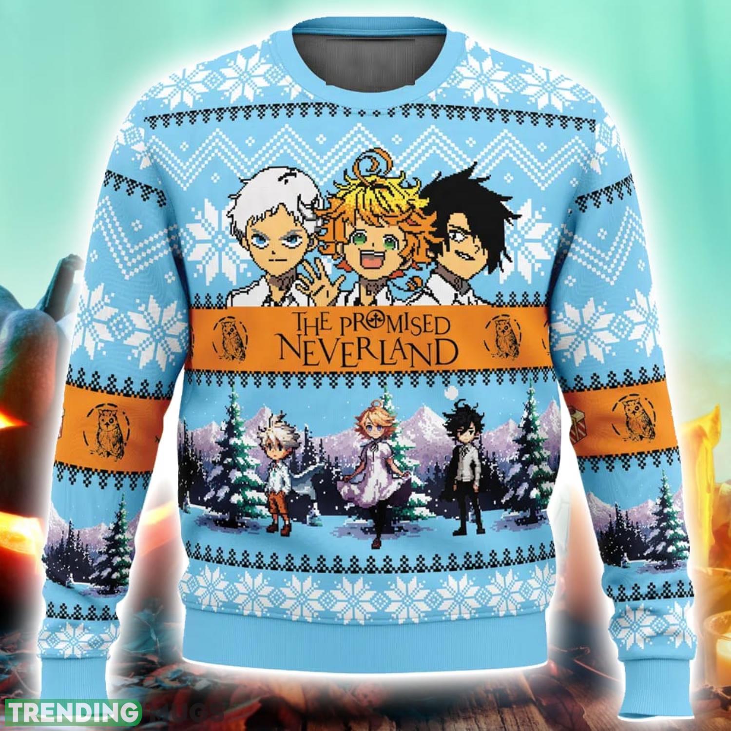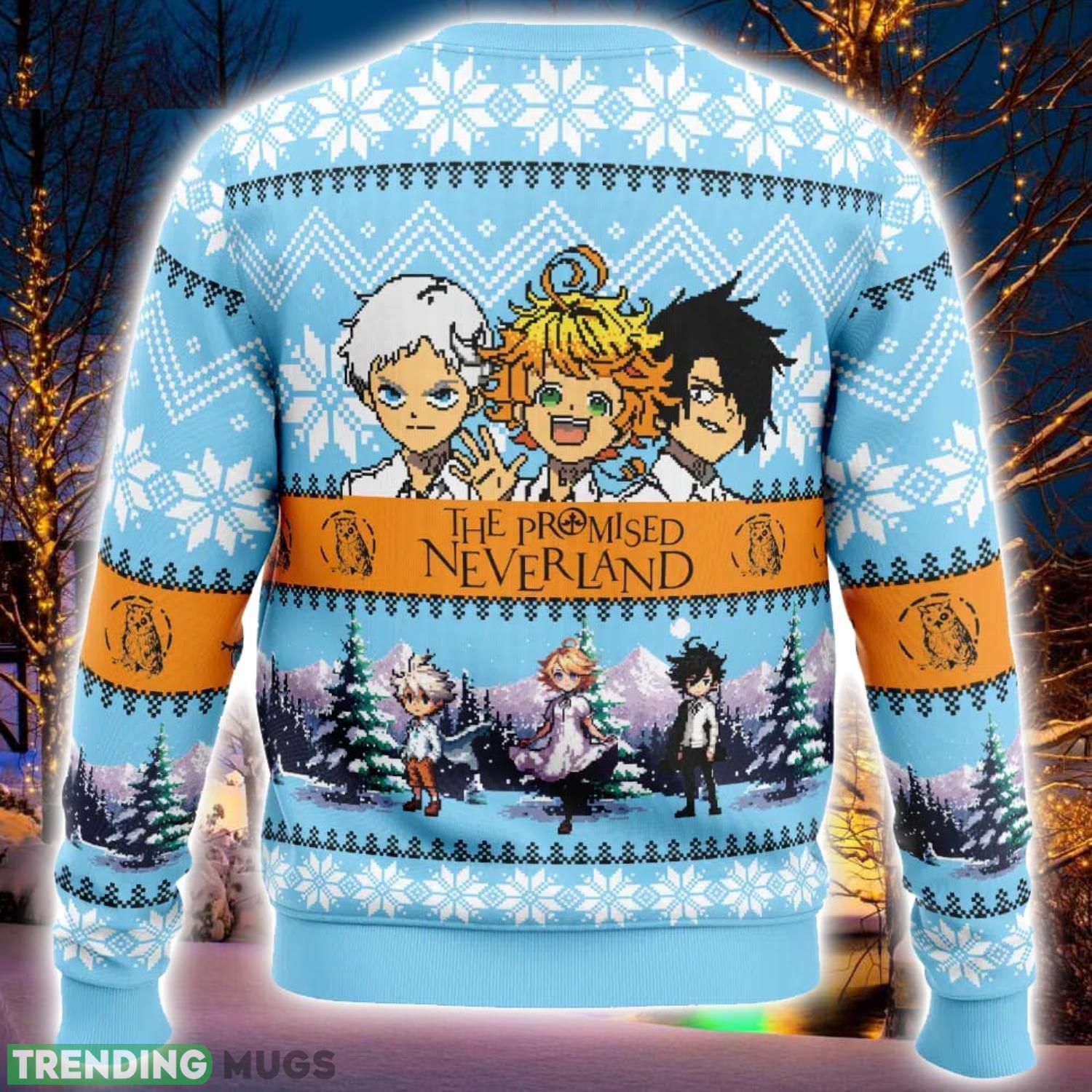 The White Christmas The Promised Neverland Ugly Christmas Sweater is not your ordinary holiday attire. Its intricate print showcases iconic symbols of the holiday season, making it a unique conversation starter. Spread joy and laughter as you proudly wear this sweater, knowing that you are a true trendsetter.