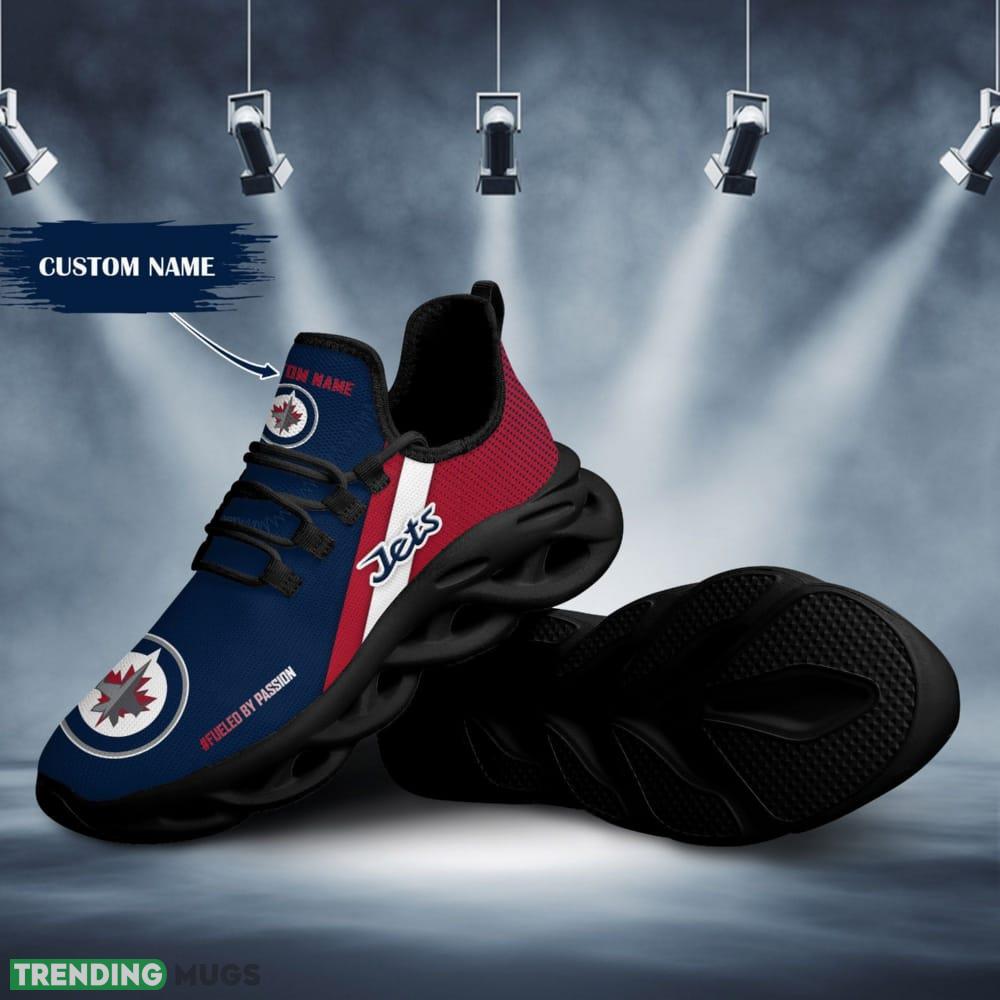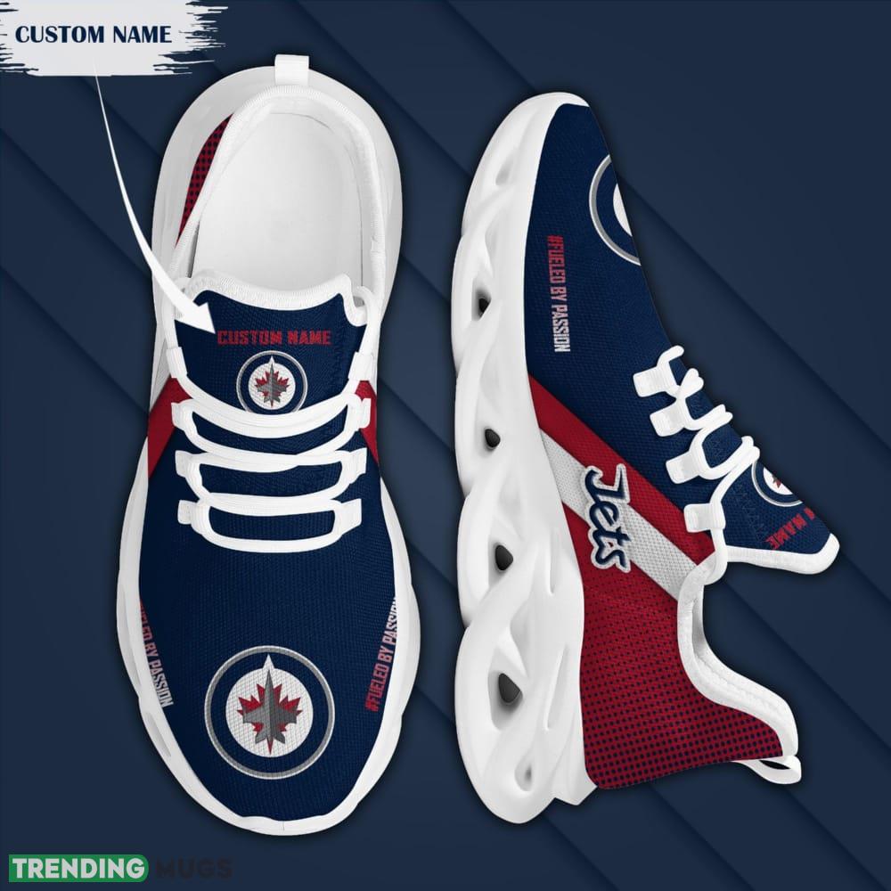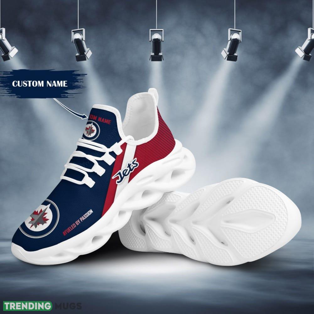 Step up your sneaker game with our Winnipeg Jets Logo Pattern Custom Name 3D Max Soul Sneaker Shoes in Red Blue. These shoes are a must-have for any die-hard Jets fan looking to showcase their team pride in style.