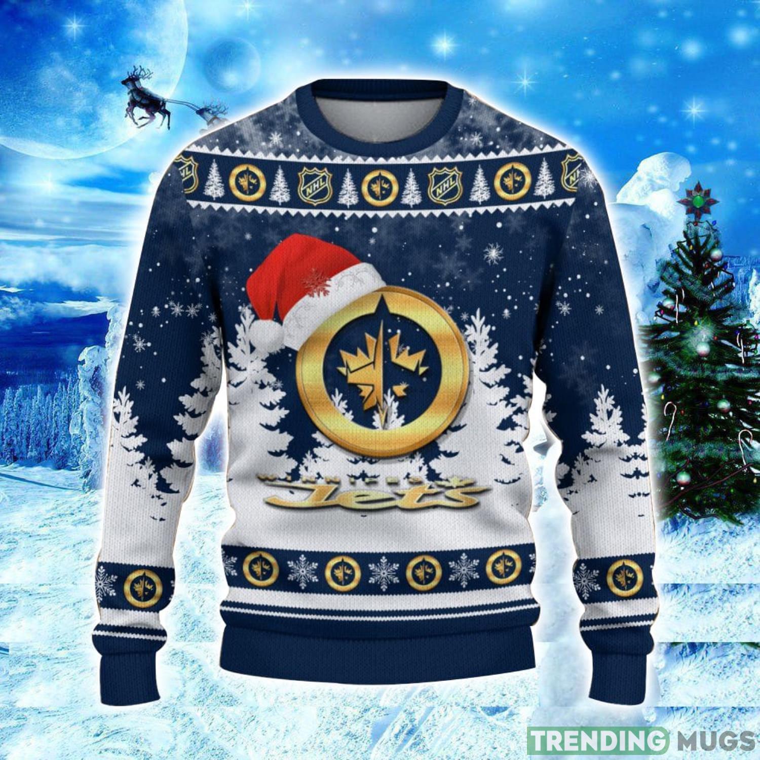 Winnipeg Jets Logo Wearing Santa Hat Christmas Gift Ugly Christmas Sweater Christmas Gift Ideas Product Photo 1