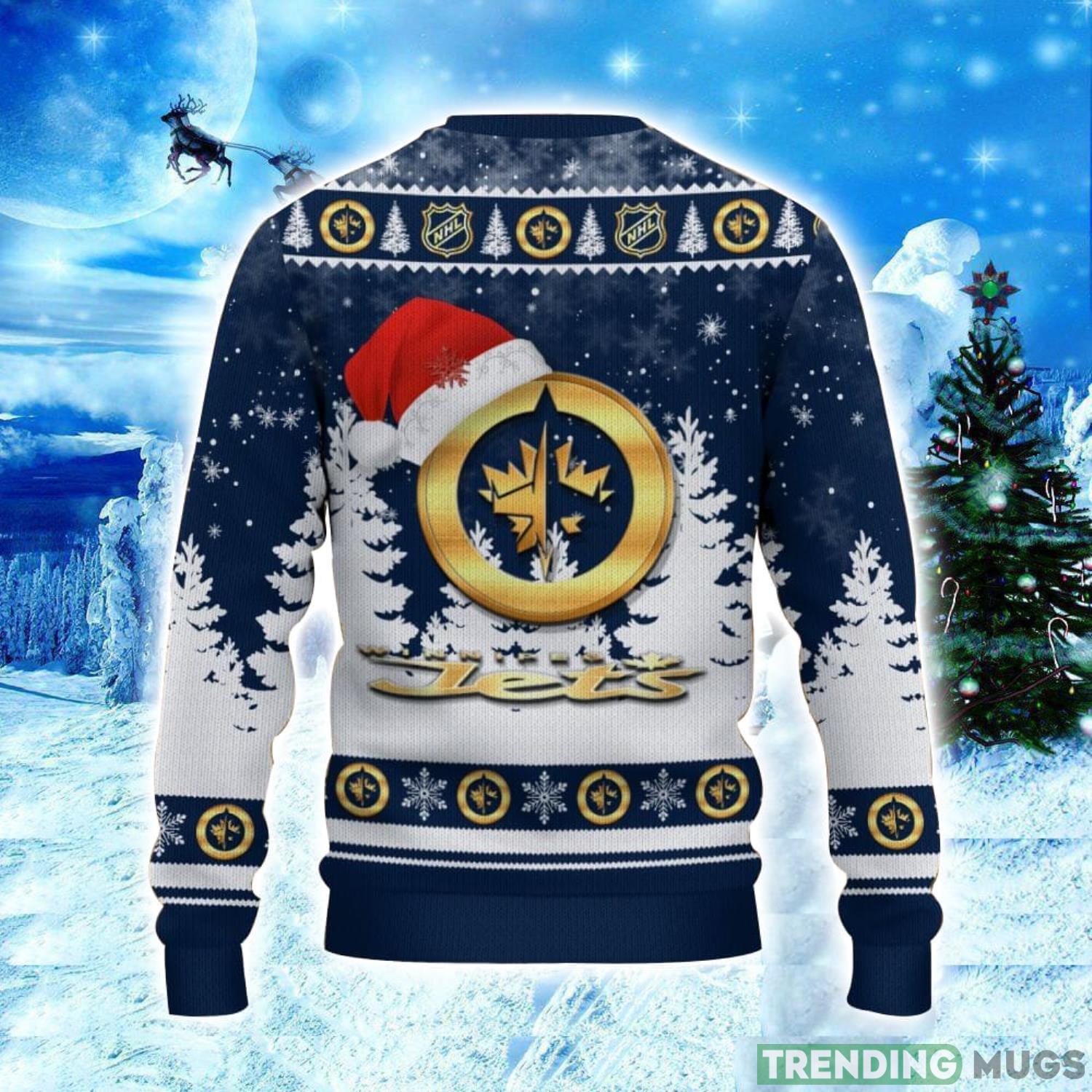 Winnipeg Jets Logo Wearing Santa Hat Christmas Gift Ugly Christmas Sweater Christmas Gift Ideas Product Photo 2