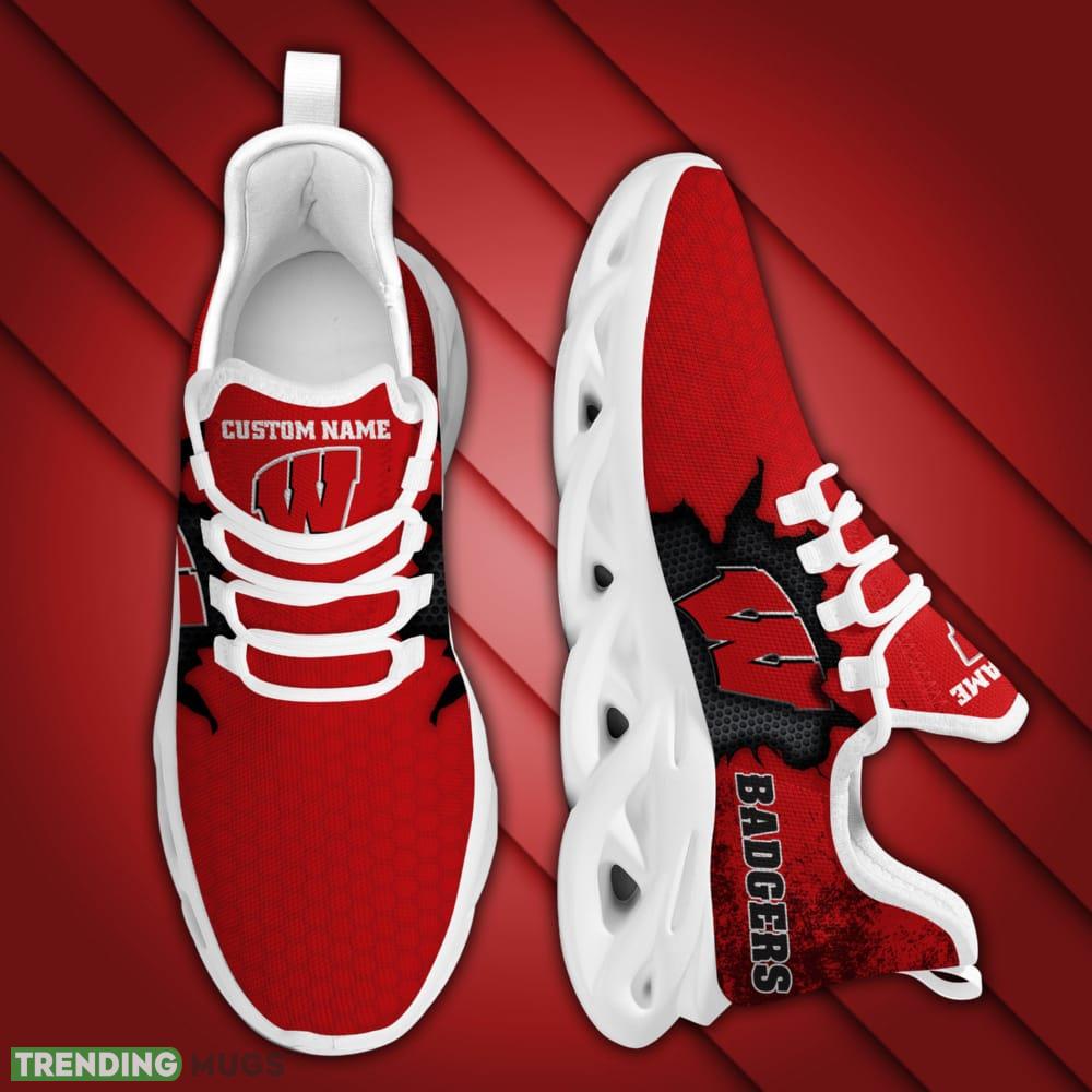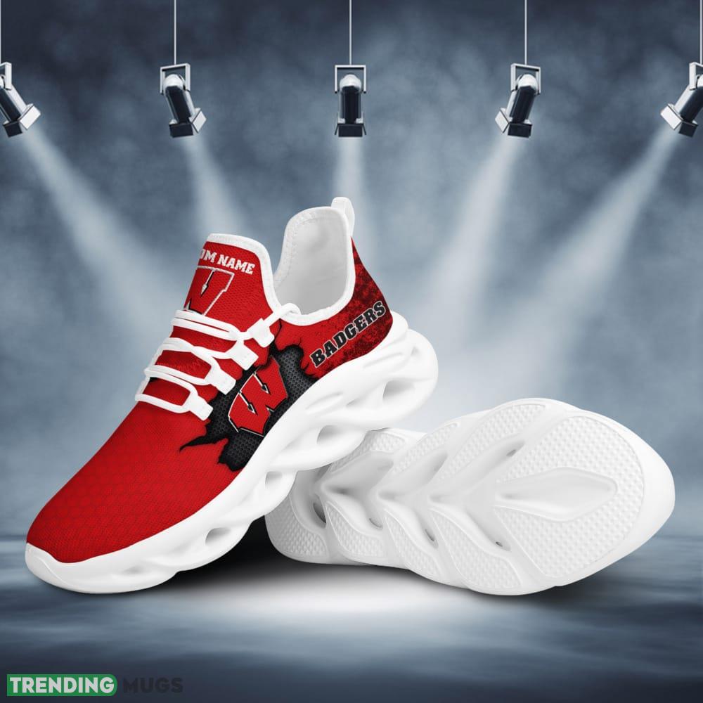 Wisconsin Badgers Cracked Design Pattern Custom Name 3D Max Soul Sneaker Shoes information: