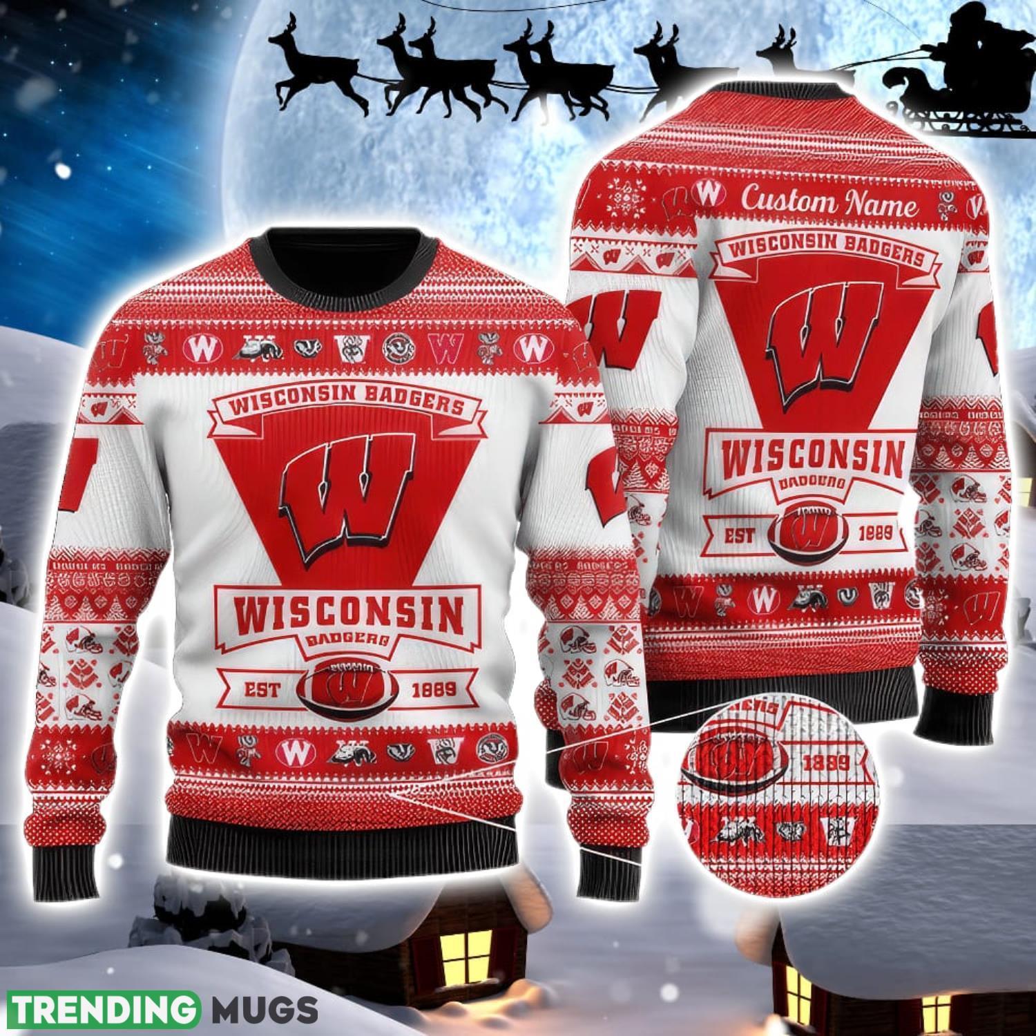 Get ready to show off your Wisconsin Badgers pride in style with our exclusive Logo Custom Name For Football Fans Ugly Christmas Sweater Christmas Gift! This one-of-a-kind sweater is the perfect way to celebrate the holiday season while supporting your favorite football team.