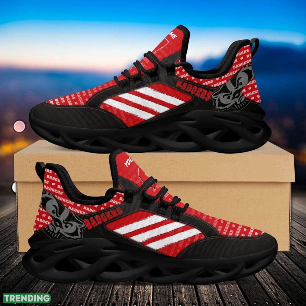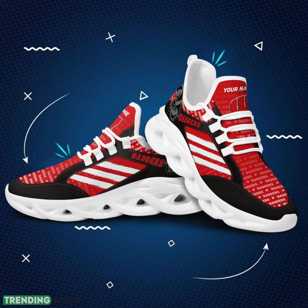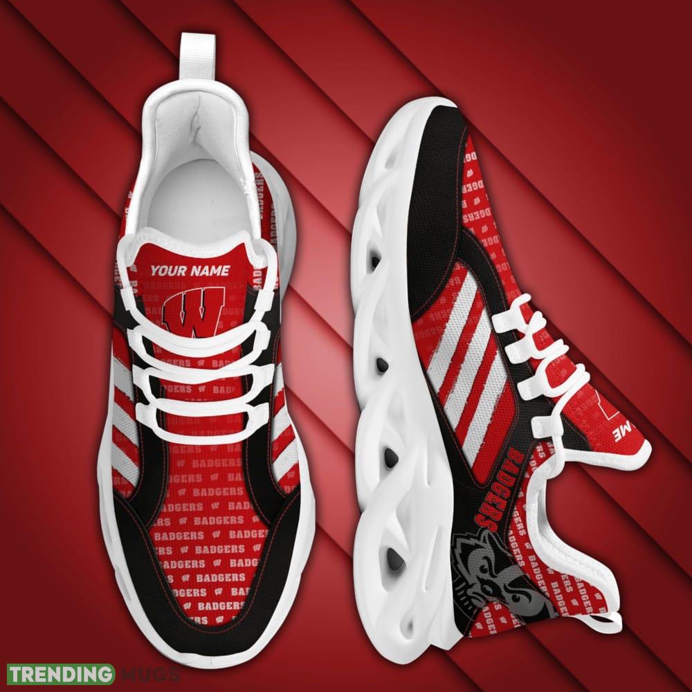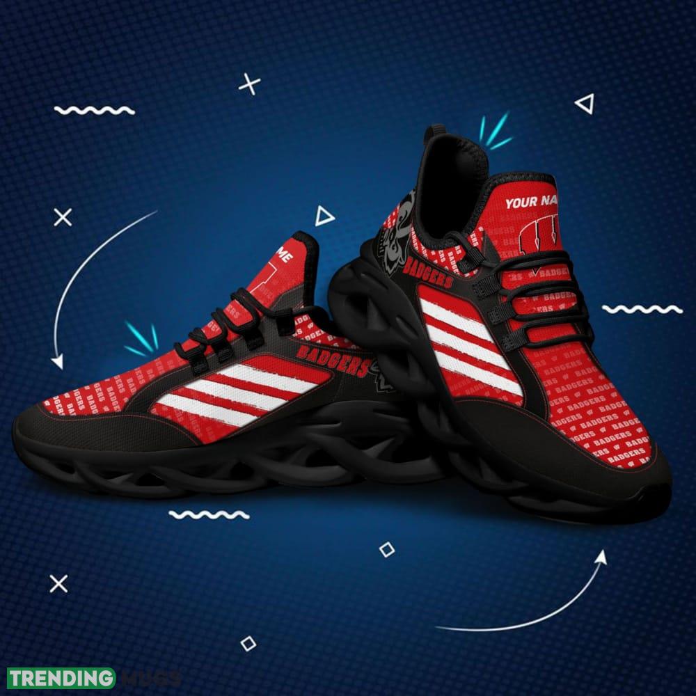 Step up your sneaker game with our Wisconsin Badgers Logo Custom Name Logo Pattern 3D Max Soul Sneaker Shoes. Crafted with precision and style, these sneakers are a must-have for any die-hard Badgers fan.