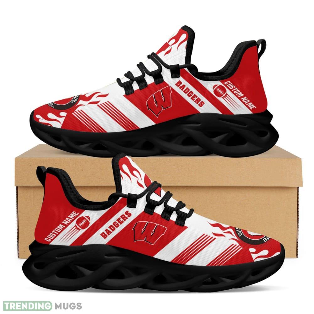Wisconsin Badgers Logo Custom Name Pattern 3D Max Soul Sneaker Shoes In Red And White information: