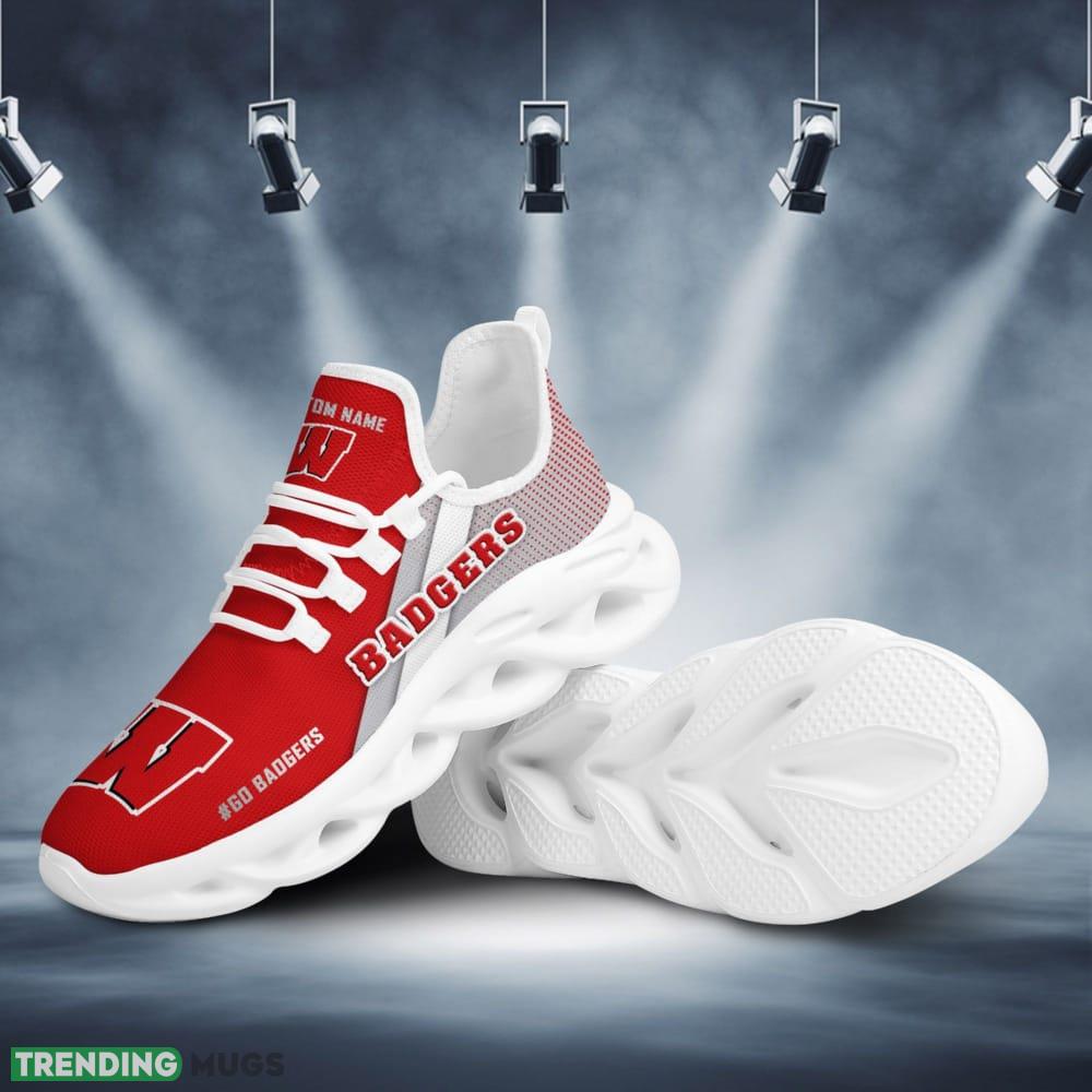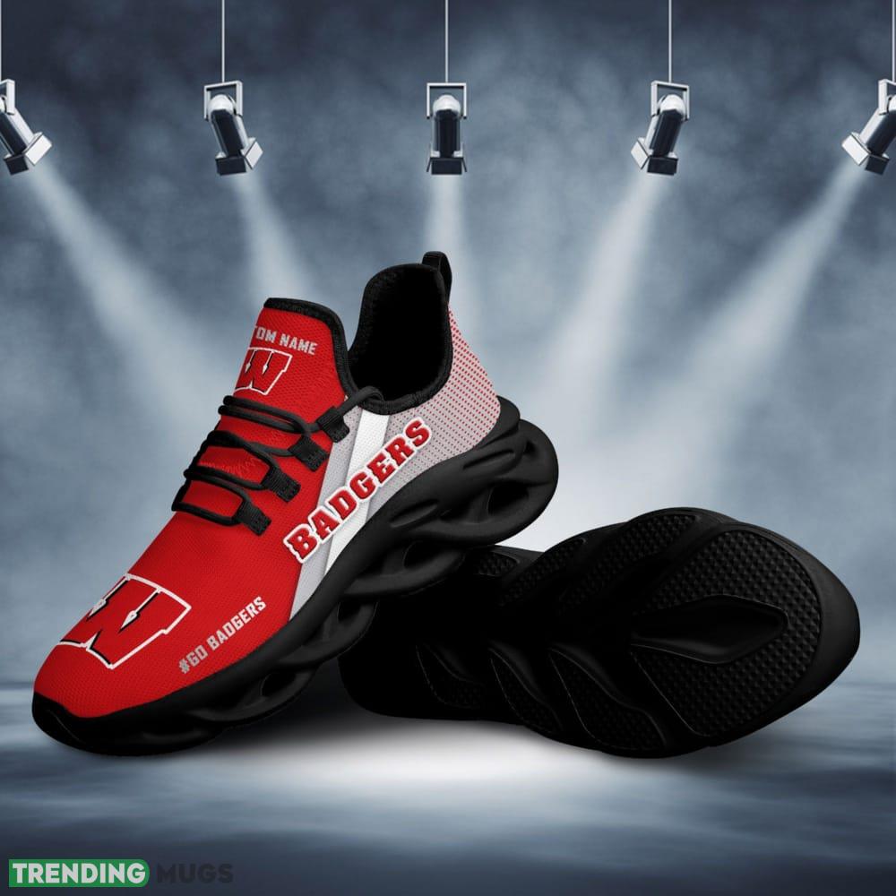 Step up your shoe game with these Wisconsin Badgers Logo Pattern Custom Name 3D Max Soul Sneaker Shoes. Designed to make a bold statement, these sneakers are perfect for any die-hard Badgers fan looking to showcase their team spirit in style.