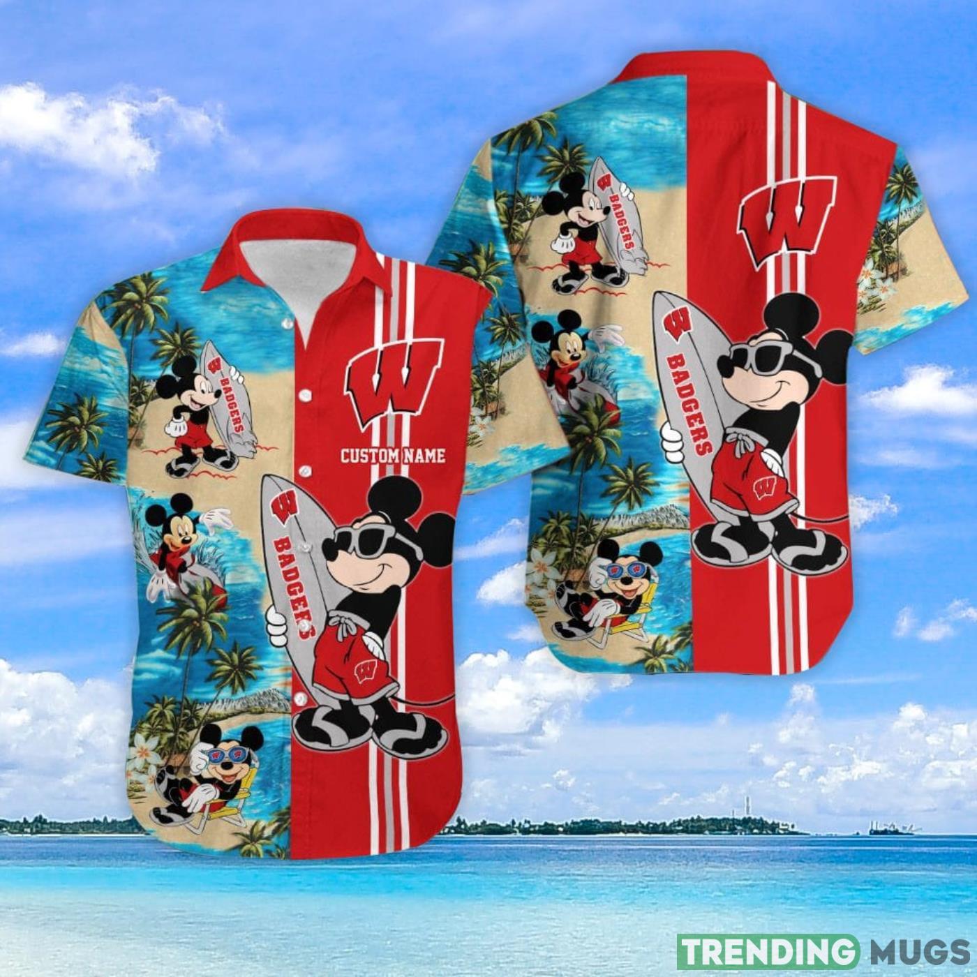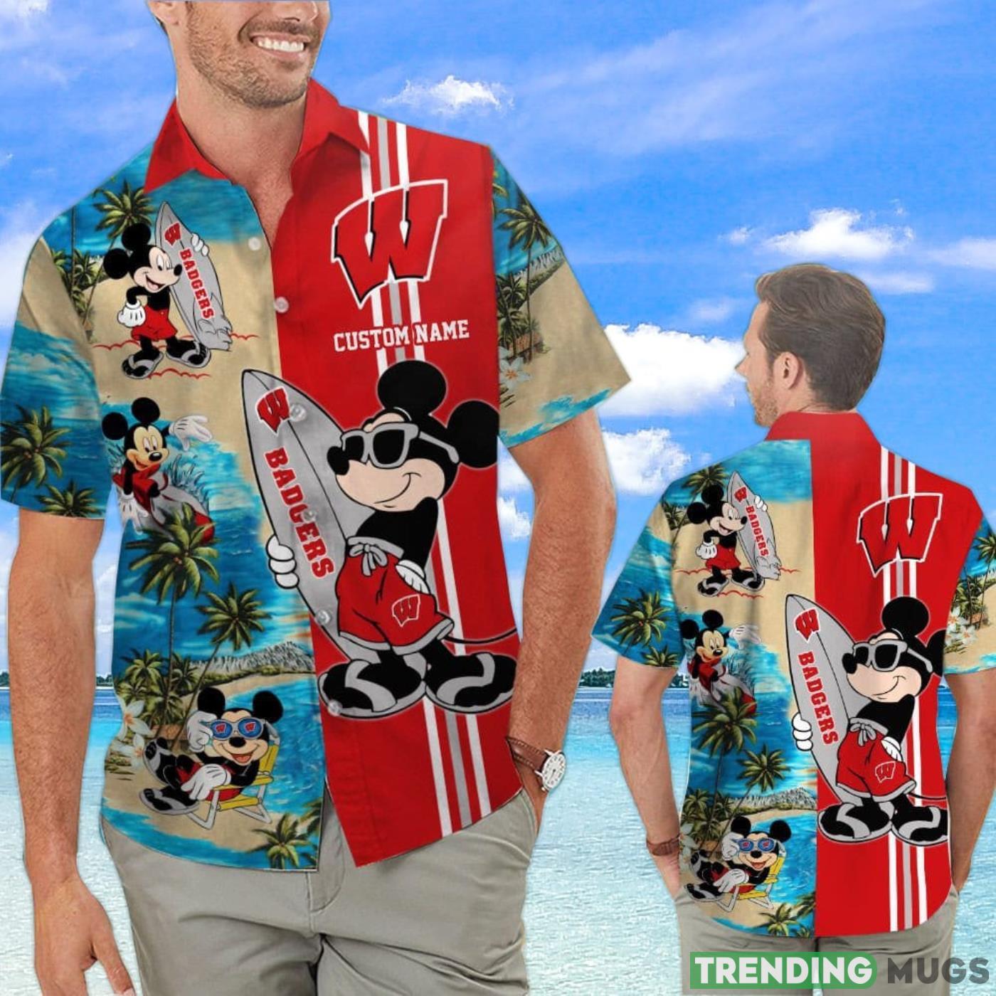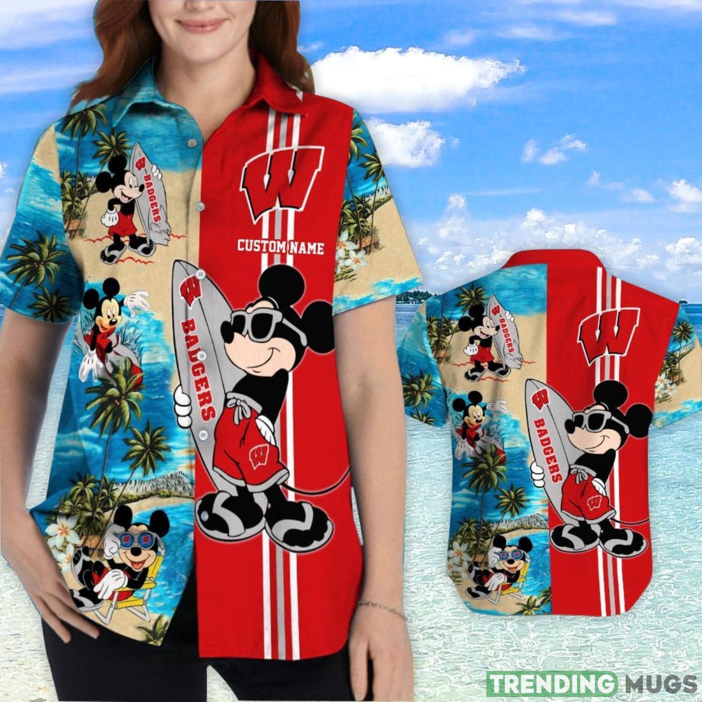 Wisconsin Badgers Mickey Surfing Lover Custom Name Hawaiian Shirt Details:
