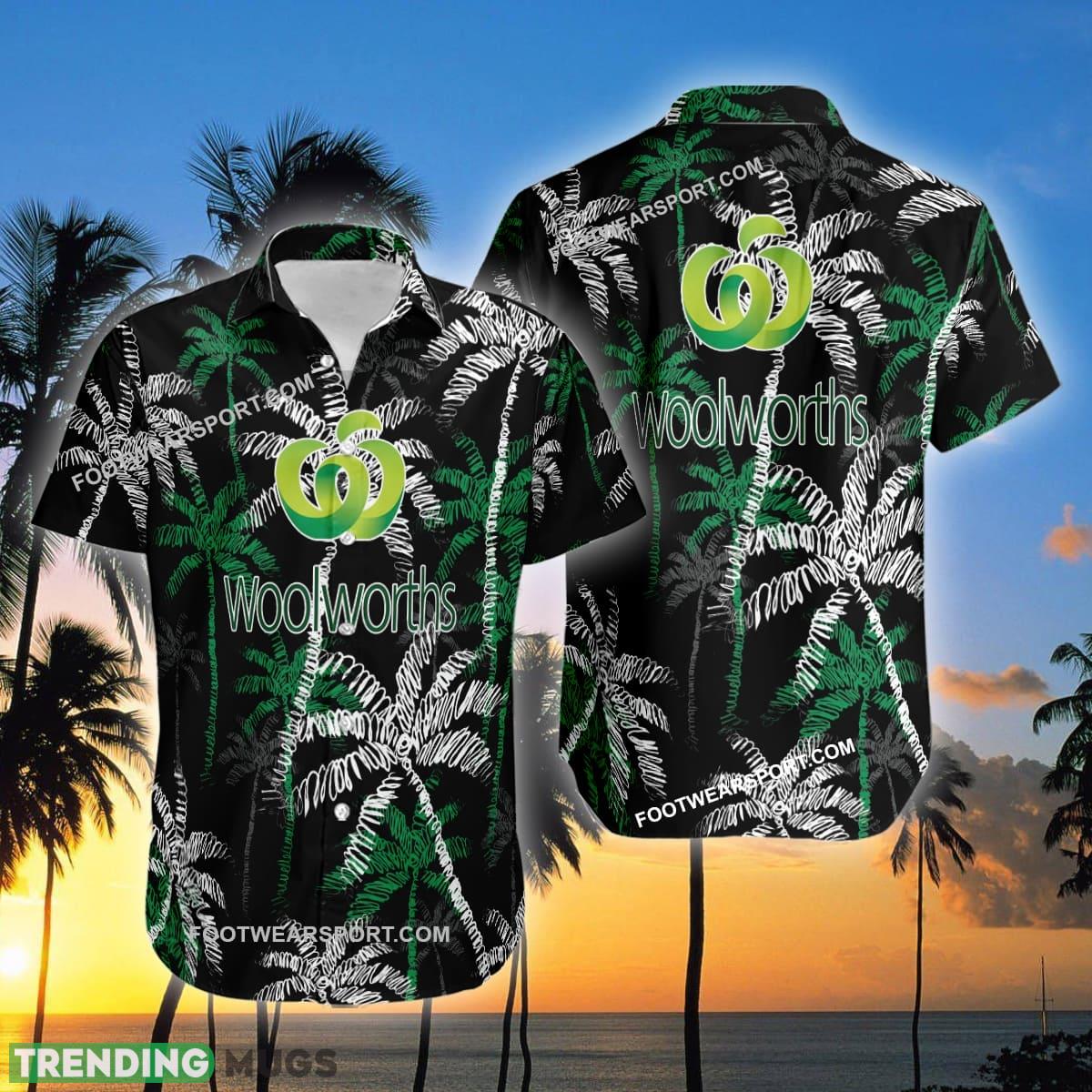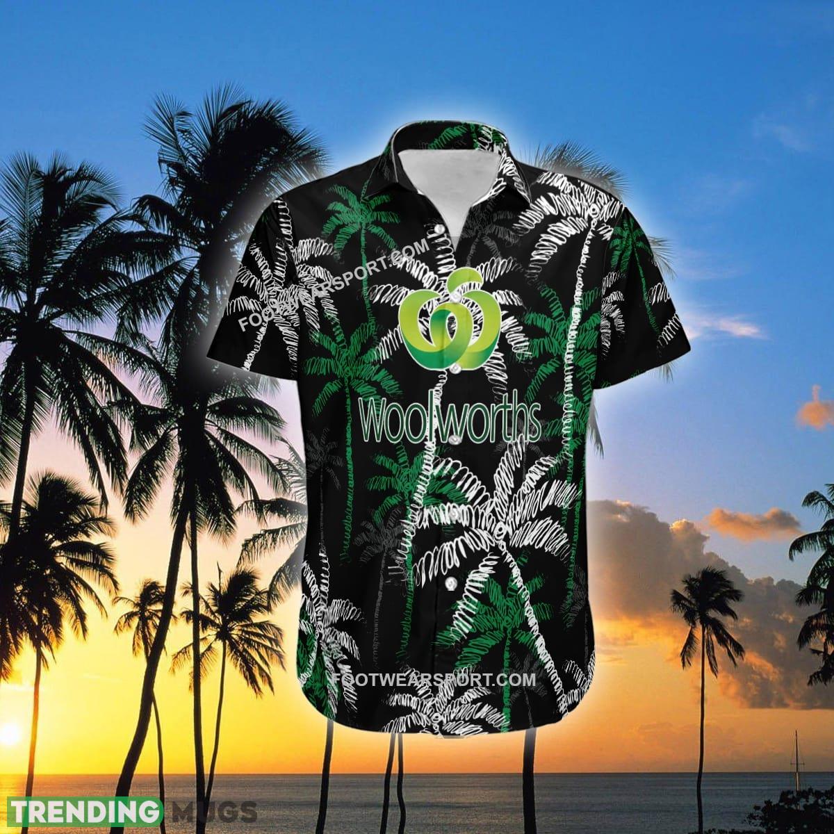 WOOLWORTHS Brand Coconut Tree Pattern Black Hawaiian Shirt For Beach – WOOLWORTHS Hawaiian Shirt Black Coconut Tree _1