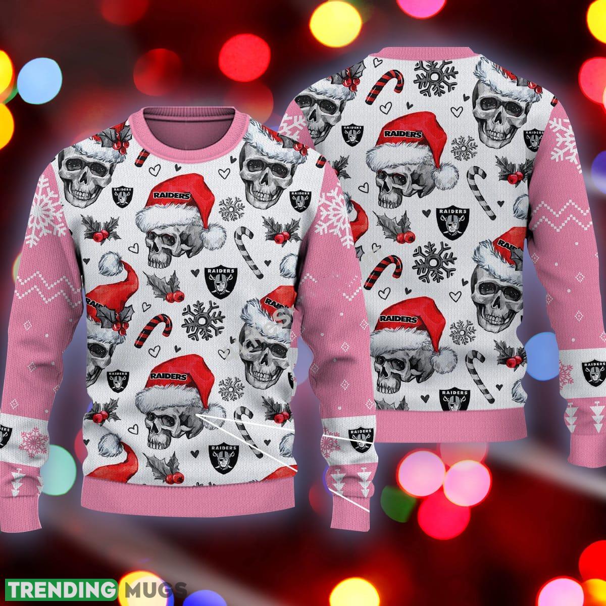 Xmas Las Vegas Raiders Skull Candy Cane Pink Ugly 3D Sweater Informations: