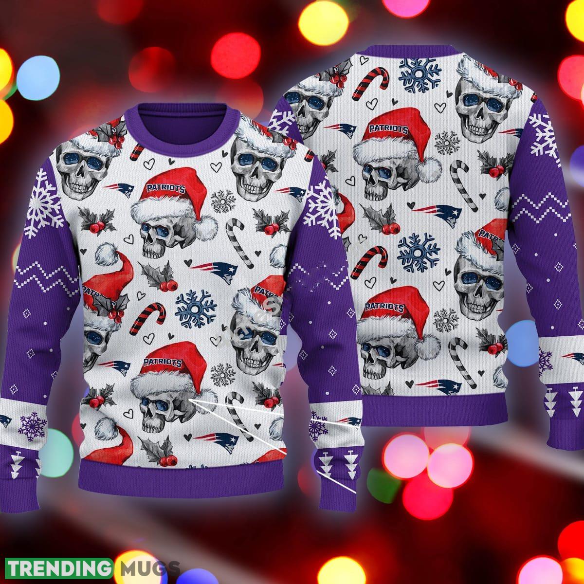 Xmas New England Patriots Skull Candy Cane Purple Ugly Sweater AOP Informations: